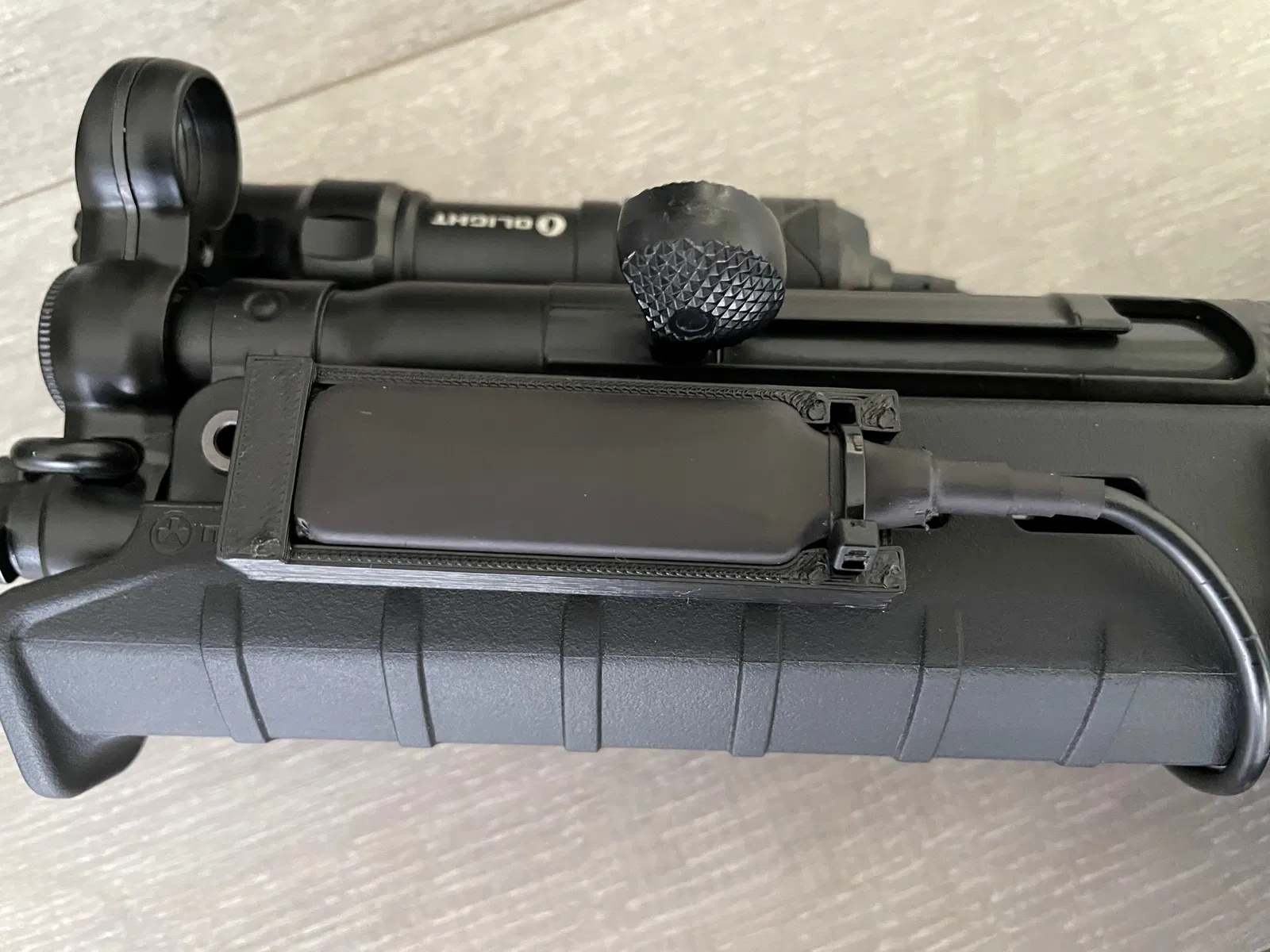 Cái giá đỡ công tắc Olight này xài ngàm M-lock nè, xài dây rút 2,5mm với ốc/vít M-lock là gắn được liền. Nhỏ gọn, tiện lợi cho anh em xài đèn pin Olight trên đồ chơi của mình.