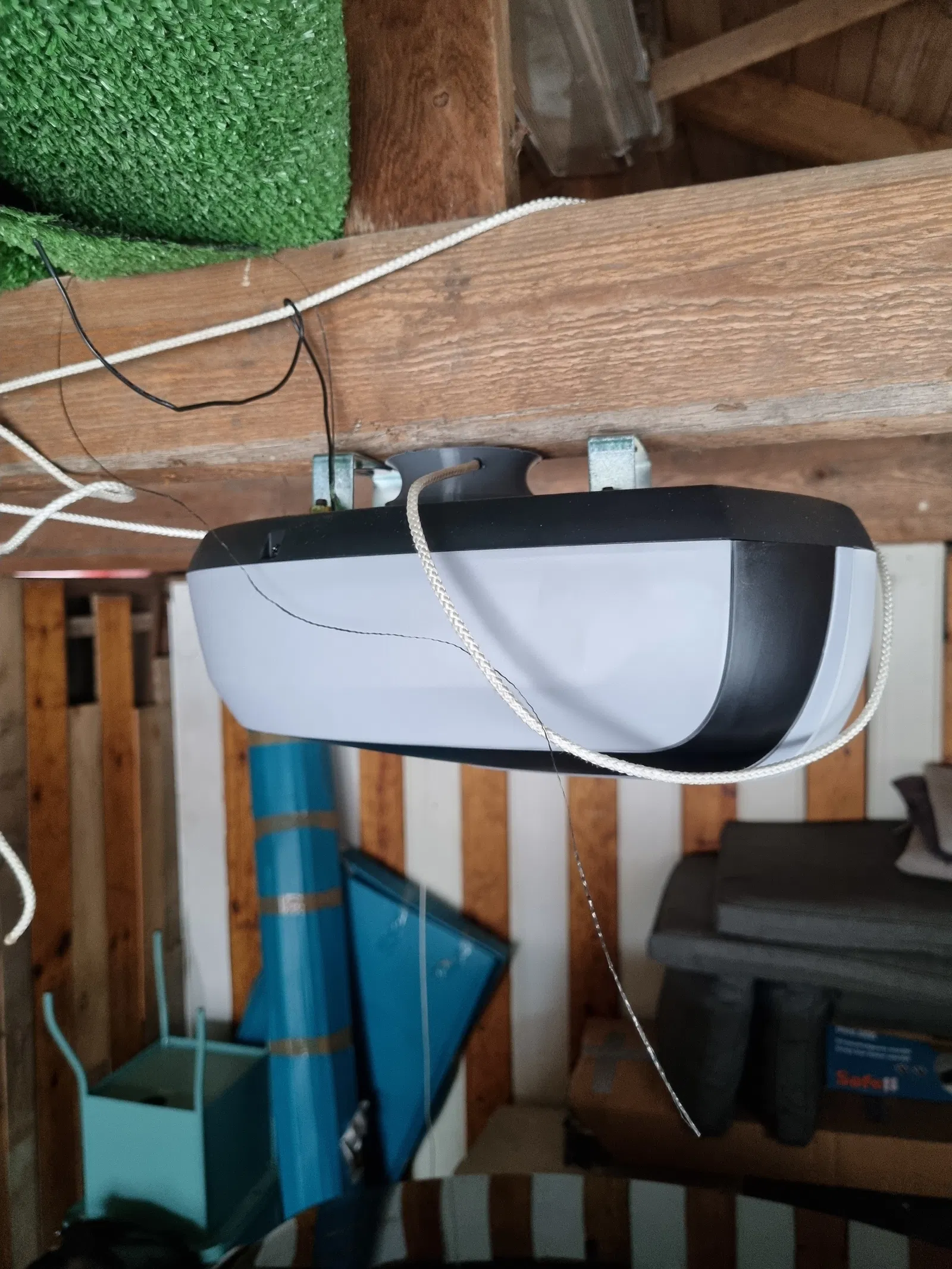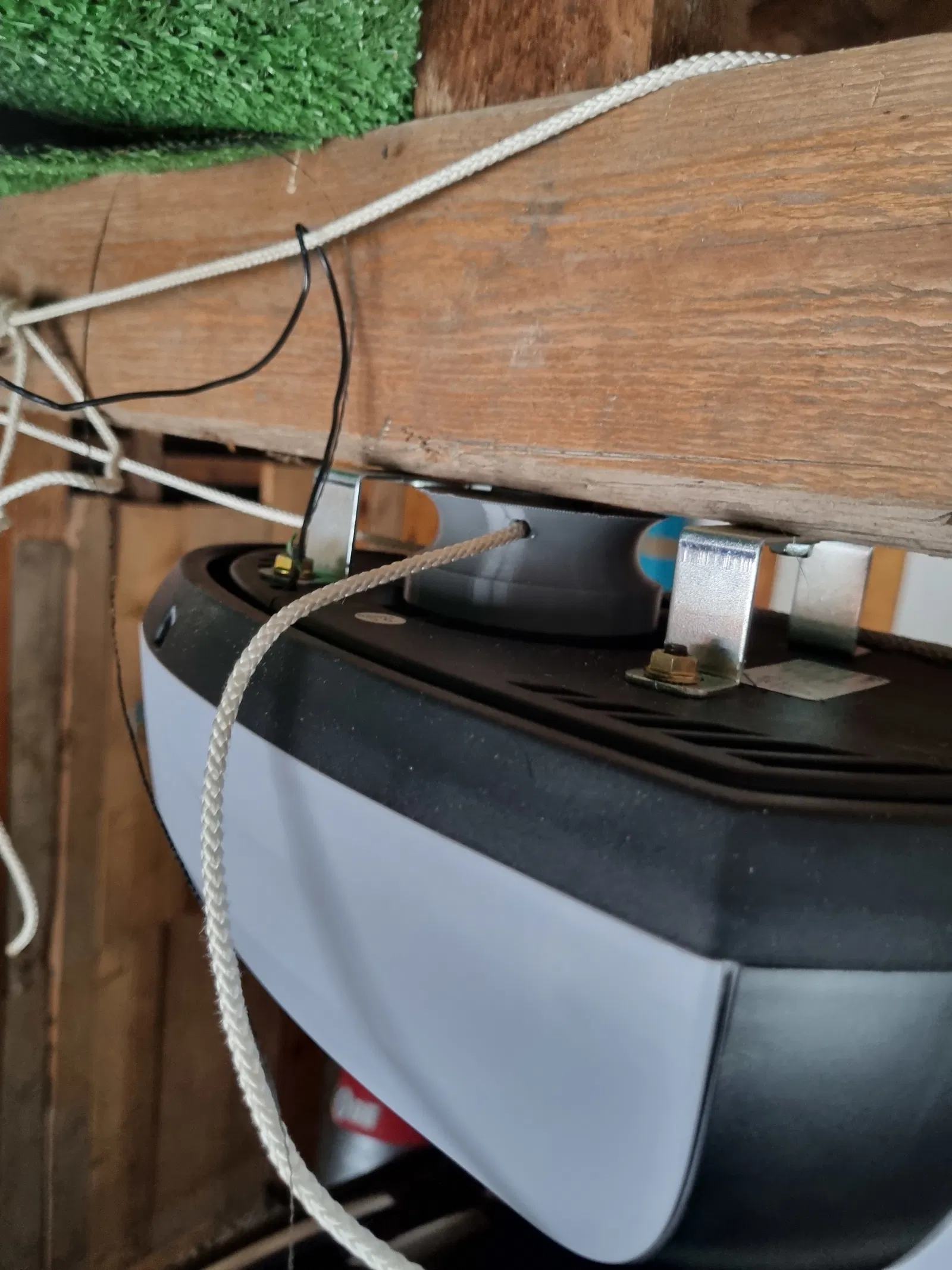 Tui làm cái ròng rọc/bánh xe cho motor cửa cuốn nhà tui. Cái bánh xe với motor kéo sợi dây hơi sát 2 cánh cửa đôi nhà tui. Xem hình nha.