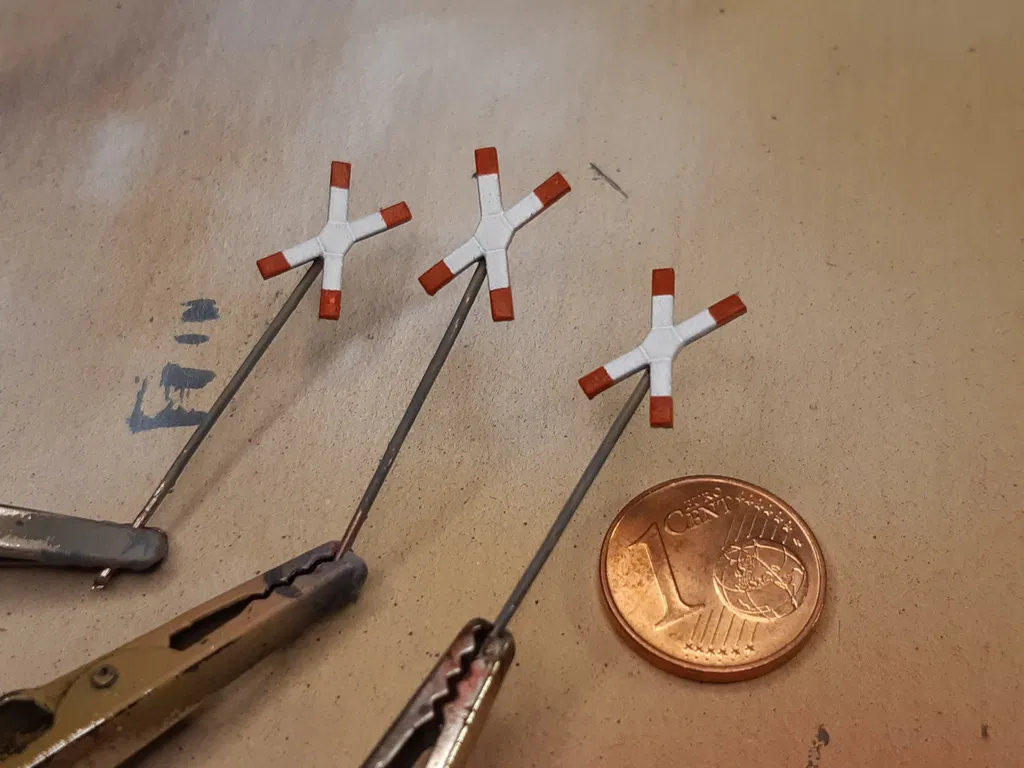 Mô hình biển báo giao thông tỉ lệ TT (1/120) và H0, mô phỏng theo phiên bản DDR. Có bản cho đèn LED và hướng dẫn scale cho tỉ lệ khác nhau. Dễ dàng lắp đặt bằng dây thép hoặc kẹp giấy.