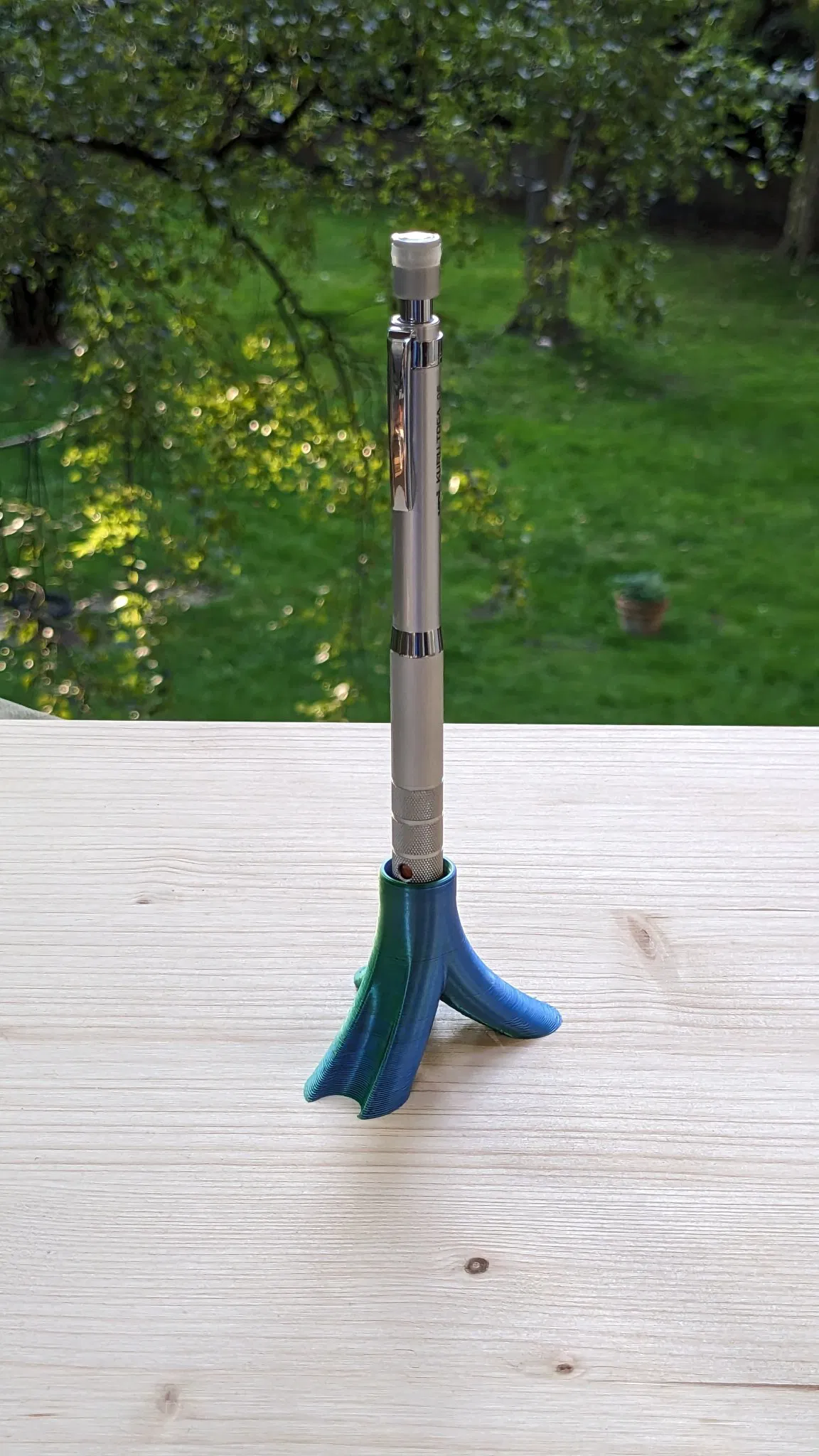 Đây chỉ là một giá đỡ bút trông có vẻ tự nhiên hơn một chút. Mục tiêu là tạo ra một giá đỡ bút cho một cây bút đơn lẻ có thể đứng thẳng và trông có chút thú vị.