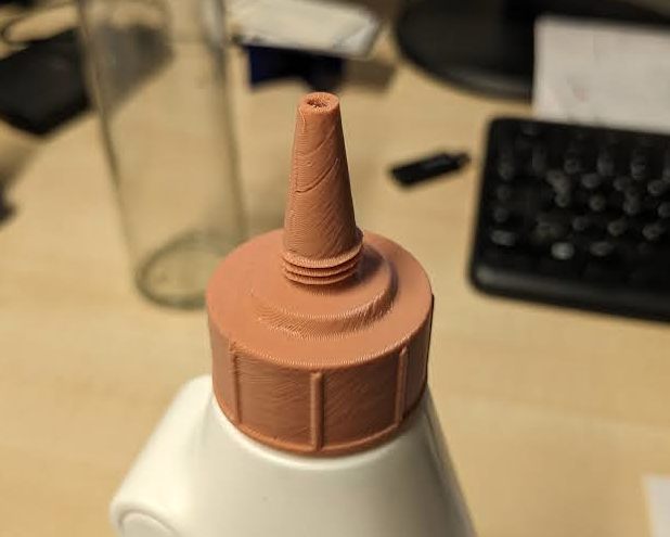 Thiết kế lại nắp chai. Tôi in bằng "organic support" vì nó không lý tưởng cho in 3D. Tuy vậy, nó vẫn hoạt động tốt với tôi. Phần này dành cho chai Ponal lớn 550g.