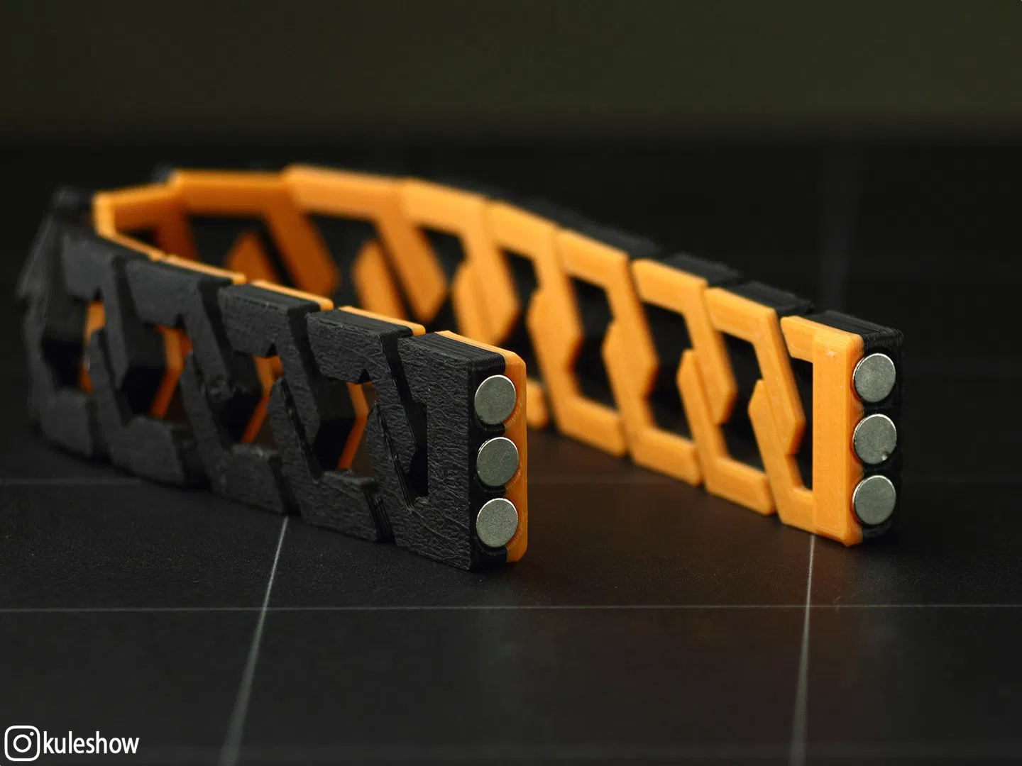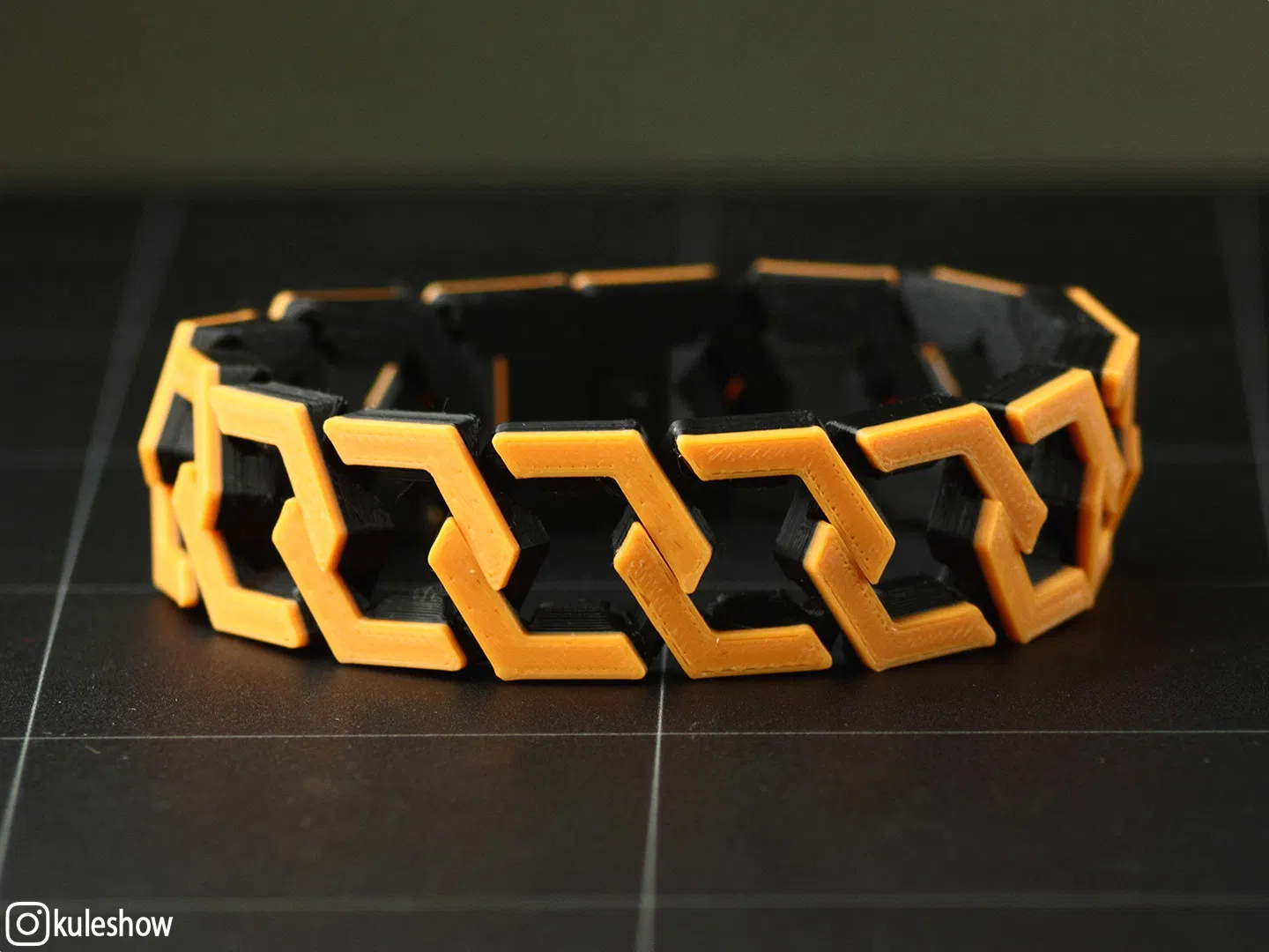 Vòng tay Hexachain khiêm tốn cho bàn tay của bạn, được mô hình hóa trong Fusion 360. Sử dụng nam châm 5x3mm, khoảng cách giữa các mắt xích 14mm. In trực tiếp, không cần support. Các bản cập nhật bao gồm mắt xích mở, dây chuyền không khớp nối, lỗ nam châm lớn để dán, phiên bản dây chuyền ngắn hơn, mắt xích cuối và mắt xích đơn, cùng file .step để dễ dàng chỉnh sửa.