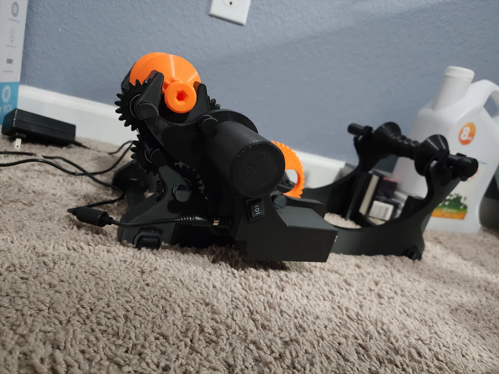 Tao cái vỏ cho cái đế motor 37mm xài trong bản remix đế motor gốc của GekoPrime. Thêm chỗ gắn cho cái bộ điều khiển DC với cục nguồn 12v.