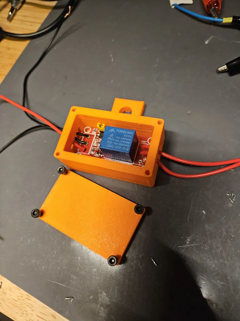 Hộp K.I.S.S chân đế 3/8 cho relay kênh đơn với optoisolator, được tạo bằng công cụ KISS openscad. Link tới relay Amazon và link tới công cụ openscad đều có sẵn trong mô tả.