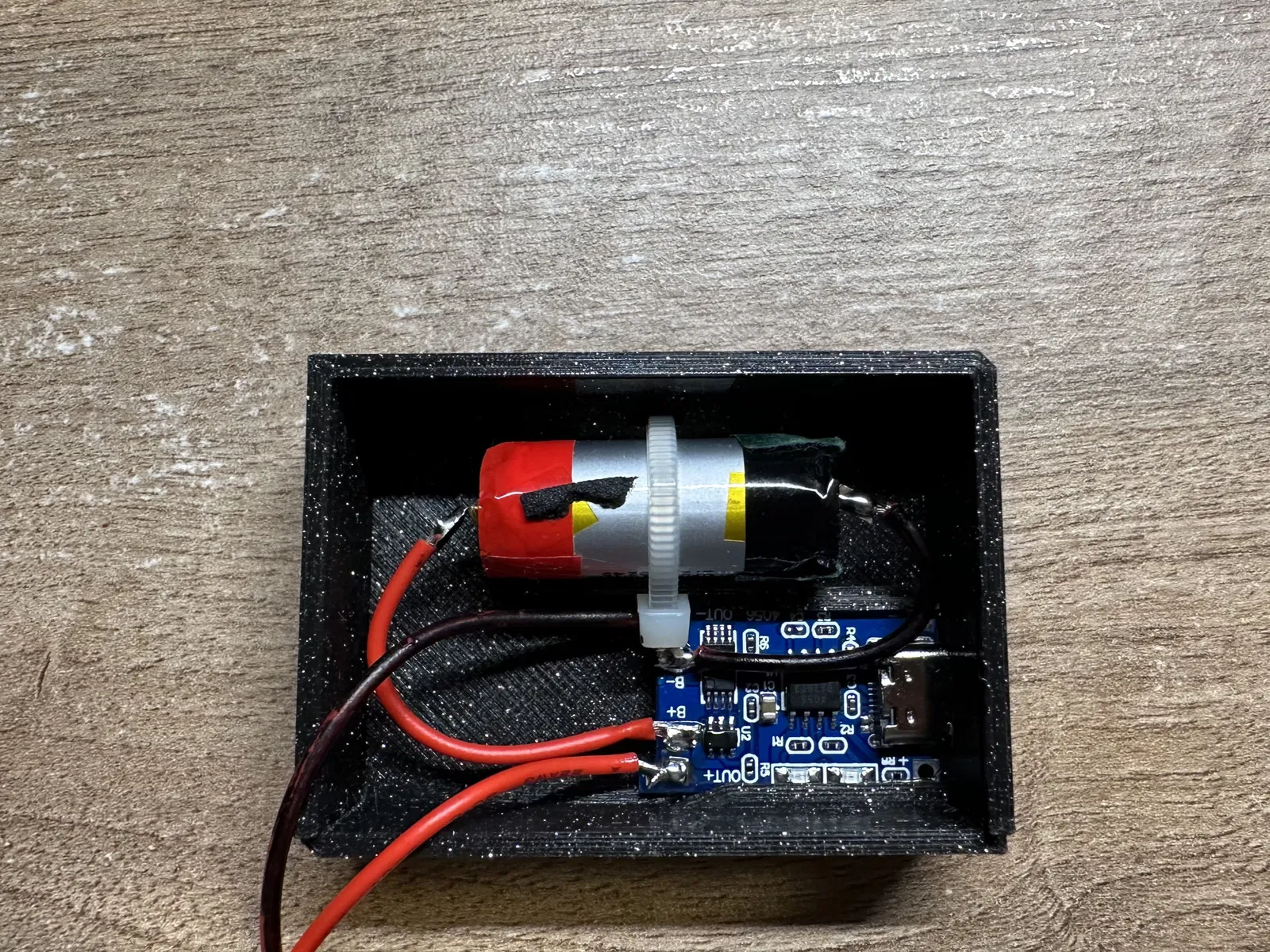 Tui muốn bỏ mấy cục pin cúc áo xài 1 lần cho cái cảm biến này, nên tui đã chế lại cái hộp để chứa 1 cục pin vape sạc lại và 1 module sạc, để tui có thể sạc pin qua cổng USB-C luôn.