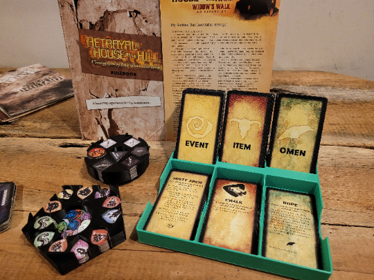 Chứa tất cả token cho game board Betrayal at House on the Hill và bản mở rộng Widows Walk. Mọi thứ đều vừa vặn trong hộp gốc cùng với khay nhựa nguyên bản.