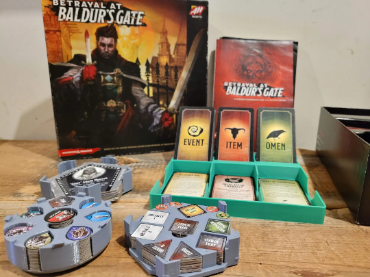 Bộ tổ chức Token cho Betrayal at Baldur's Gate. Dùng để đựng các quân cờ nhỏ, lỉnh kỉnh trong game, kể cả các ô nhân vật lớn. Khay đựng thẻ bài tiện lợi cho cả khi cất và khi chơi.