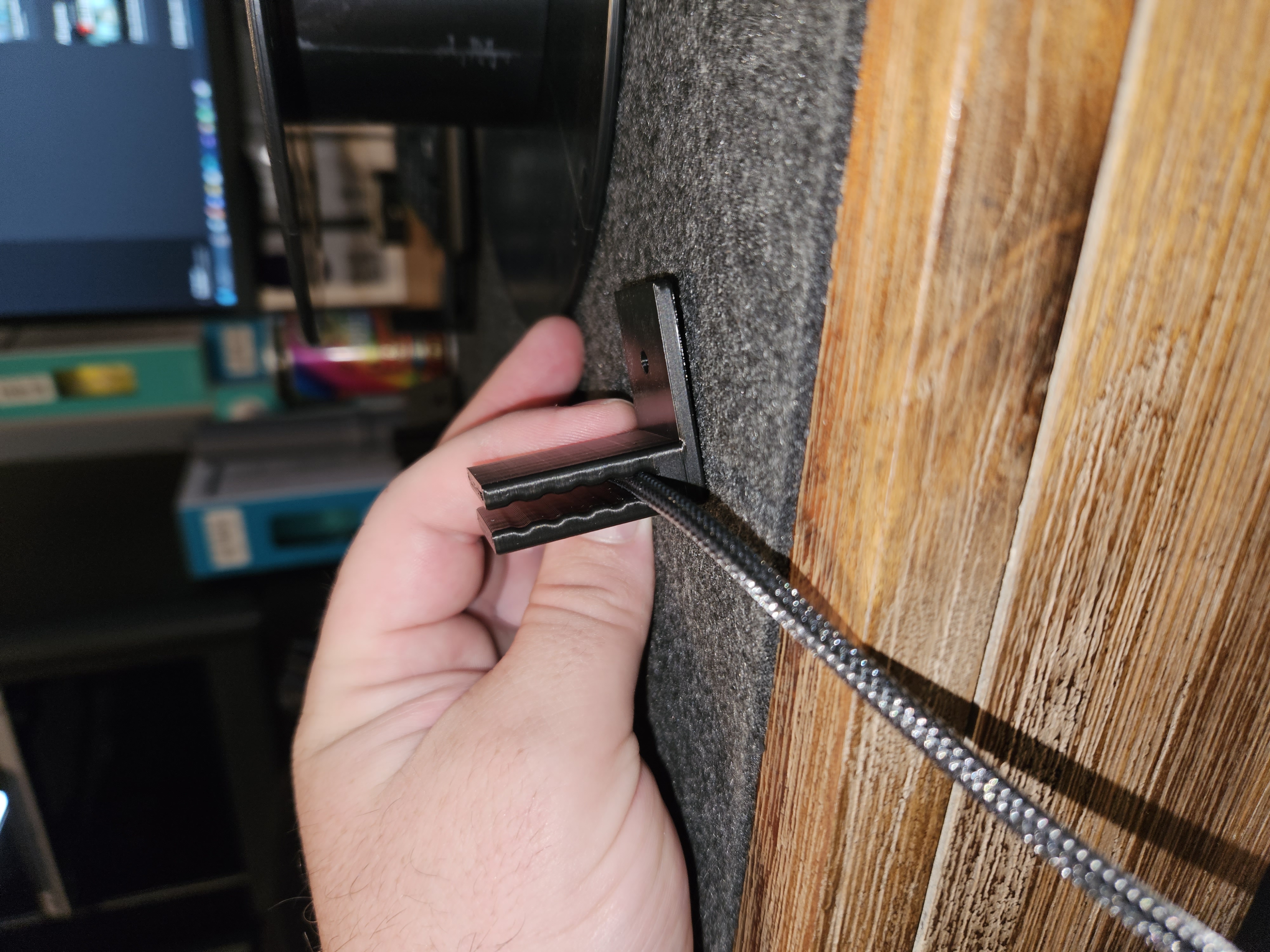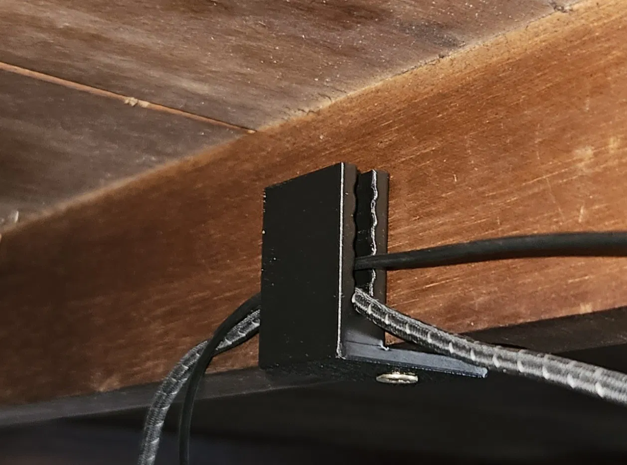 Kẹp giữ cáp tiện lợi cho bàn làm việc, giúp quản lý cáp hiệu quả với sức chứa lên đến 5 sợi cáp 4mm. Có thể lắp đặt linh hoạt trên cả mặt bàn dọc và ngang, yêu cầu bắt vít để cố định chắc chắn.