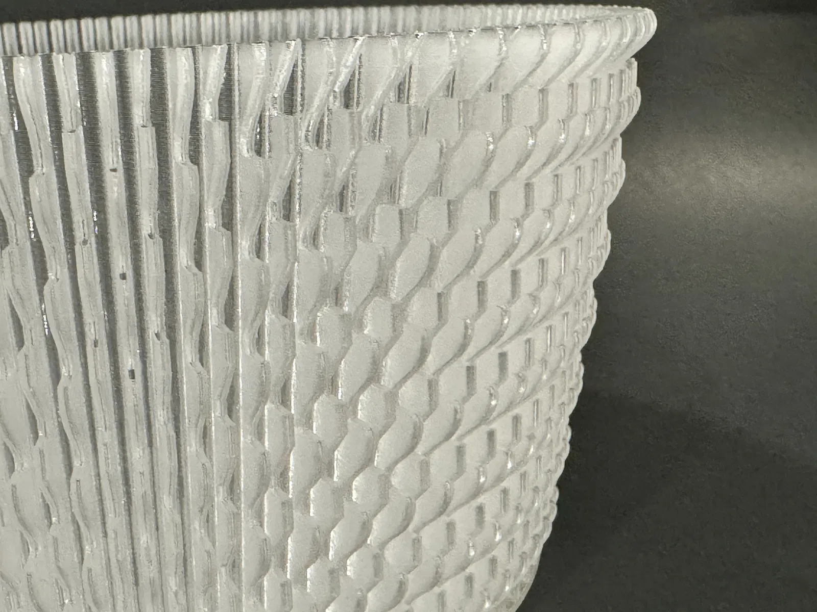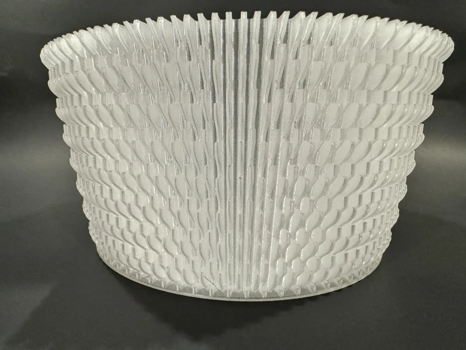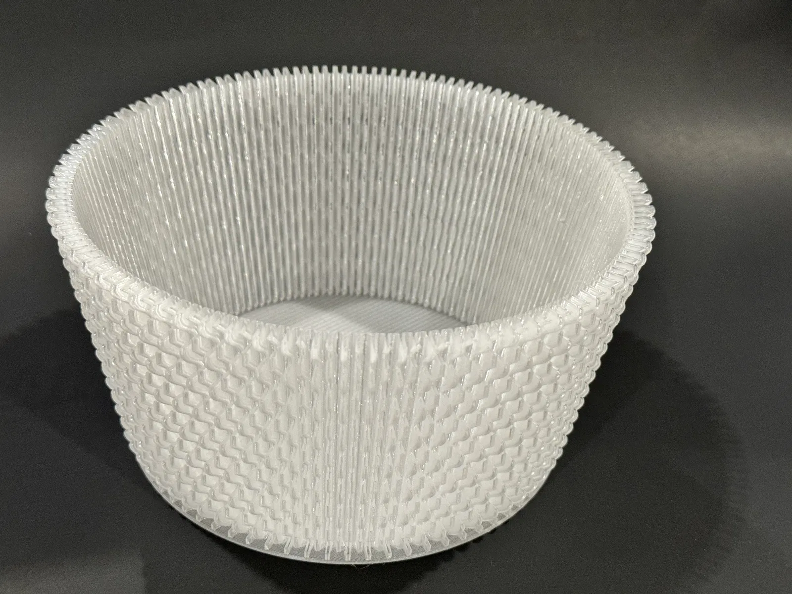 Cái tô này được làm để in ở chế độ Vase Mode (hay còn gọi là spiral mode tùy theo phần mềm slicer của bạn). Nó có độ dẻo rất tốt, nhưng không dễ vỡ như nhiều bản in Vase Mode khác. Nhân tiện nói luôn là--nó không dùng để đựng chất lỏng hay hạt mịn đâu nha.
