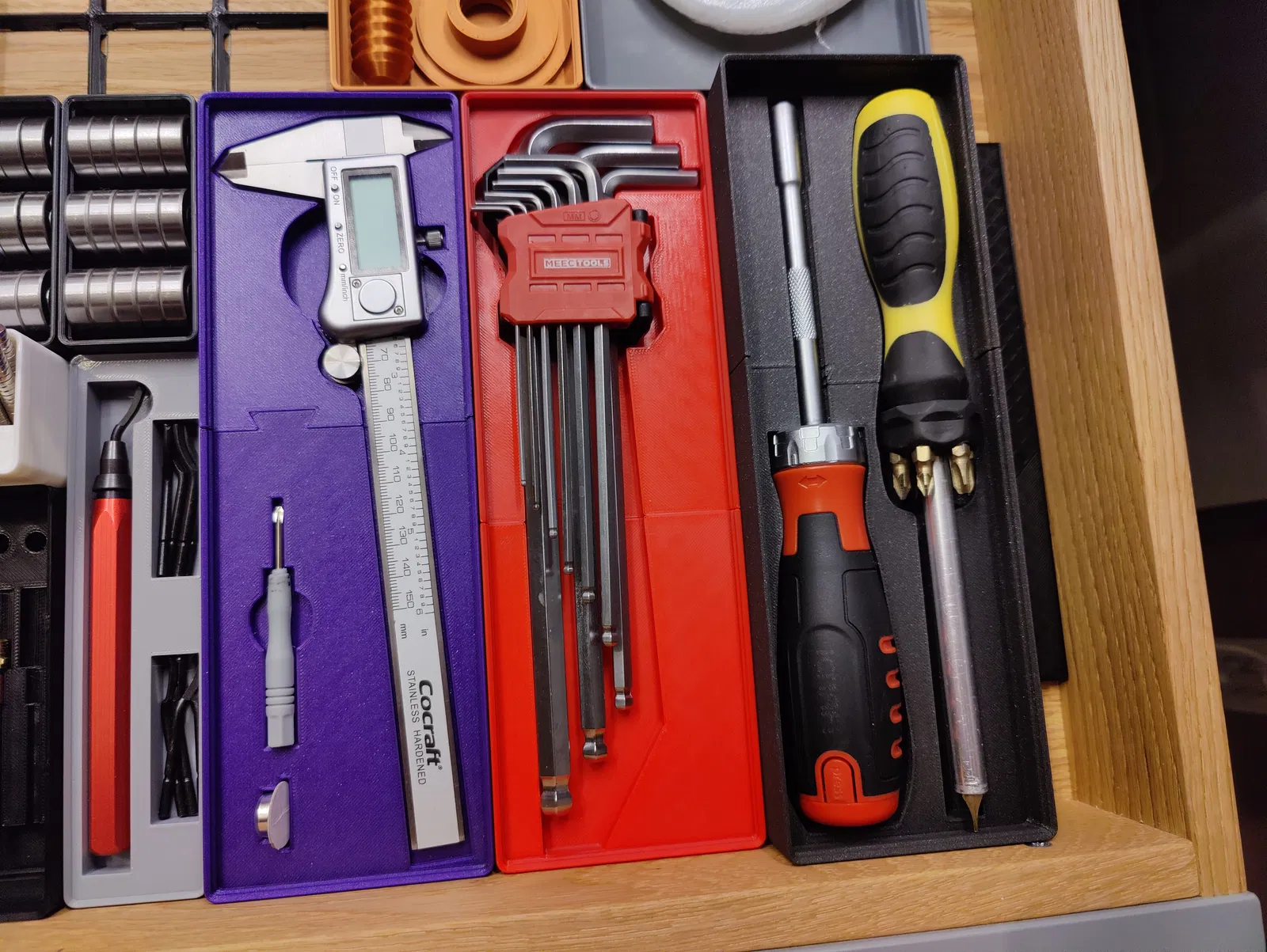 Cái hộp này dành cho bộ lưu trữ Gridfinity của bạn, có chỗ để đựng thước cặp.