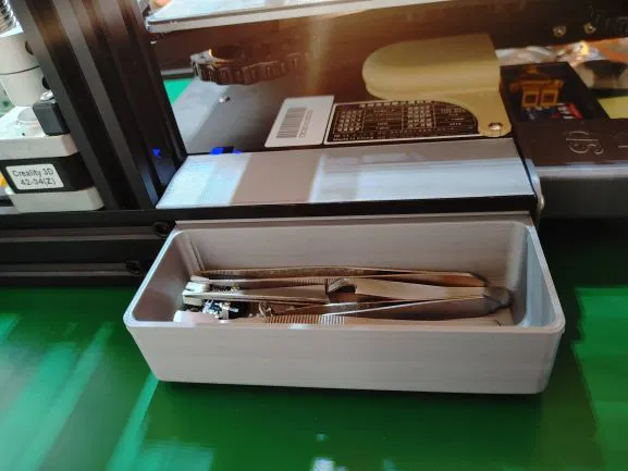 Khay gắn bên trái máy Ender 3, in liền không cần support