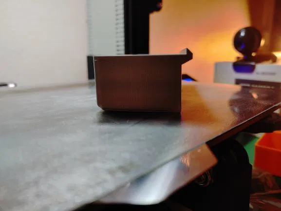 Cần một cái khay gắn bên trái máy in. Khay này sẽ lấp đầy cả mặt bên, ngay trước phần ốc giữ thanh dọc. Món đồ in này không cần dùng support.