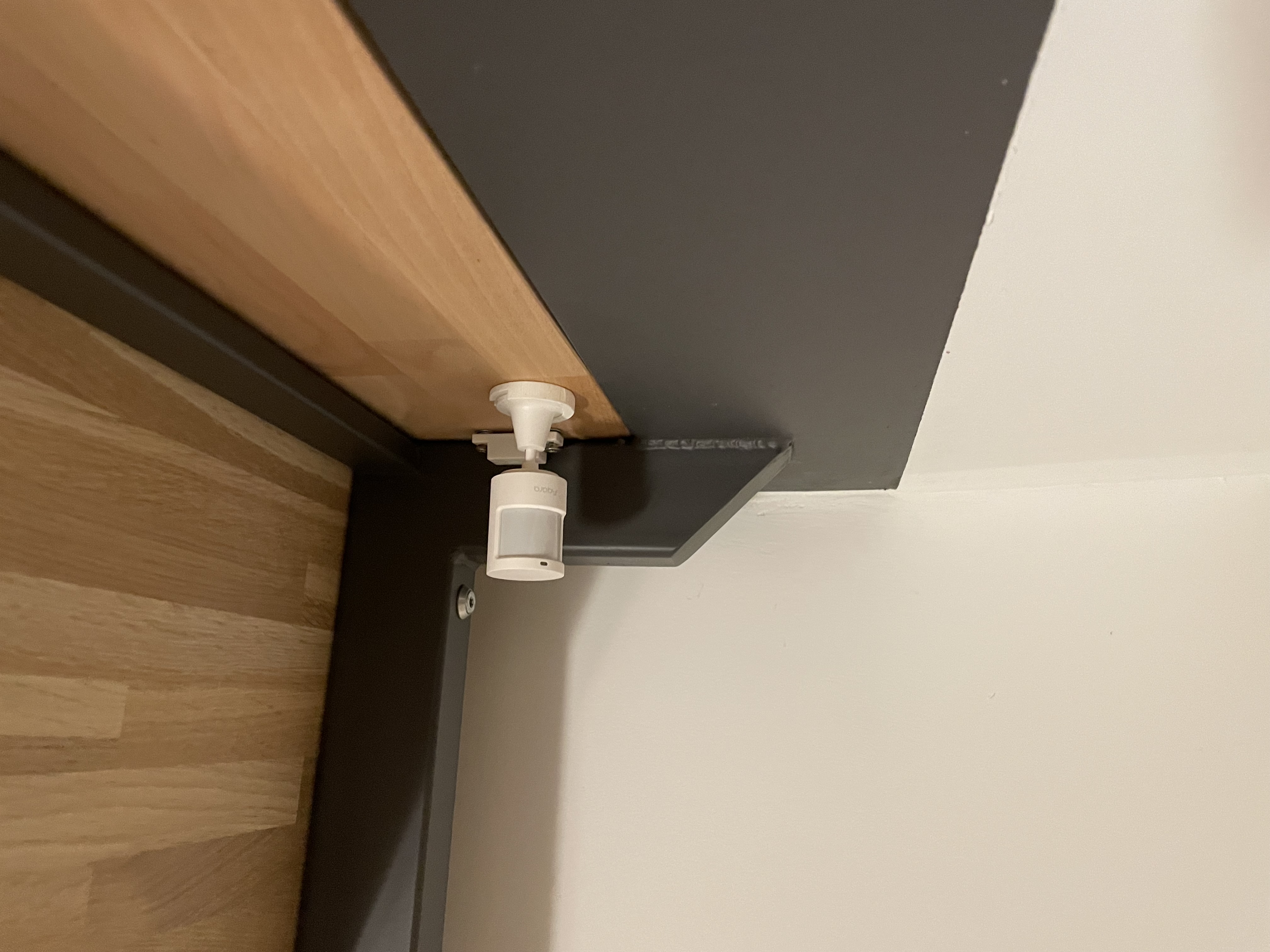 Giá đỡ để gắn cảm biến chuyển động Aqara lên tường hoặc vào móc đi kèm, loại móc này vừa với hành lang cầu thang nhà tui. Trên cái móc có khoét một lỗ để nhét nam châm vô nha.
