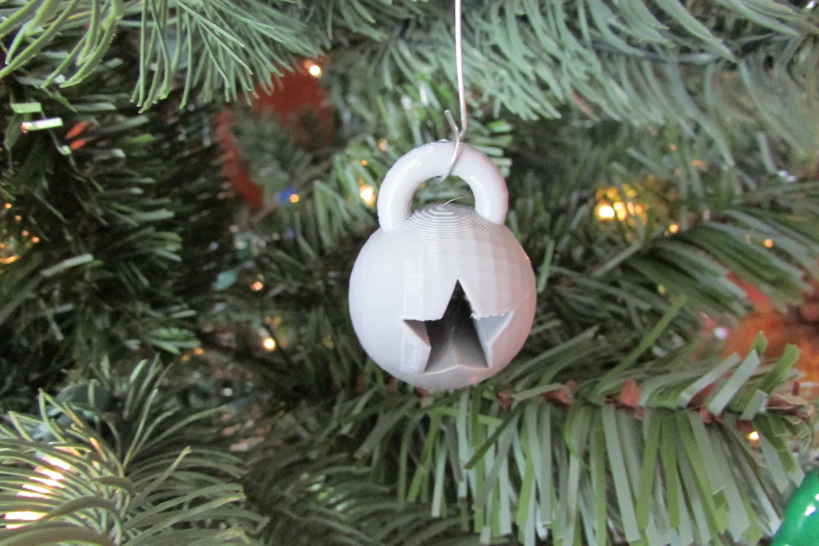 Tui làm cái quả châu nhỏ này có hình ngôi sao xuyên qua rồi treo lên cây thông. Tui thấy nó cũng ngầu phết. Món đồ trang trí này rất hợp để treo cây thông Noel, làm bằng nhựa PLA dễ in.