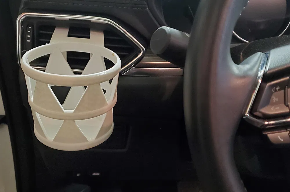 Đế ly thêm cho xe Mazda CX-5, thiết kế thông minh gắn vào cửa gió điều hòa, in 2 mảnh không cần support ở thân chính. Khuyên dùng PETG, PC, ASA, ABS để chịu nhiệt tốt.
