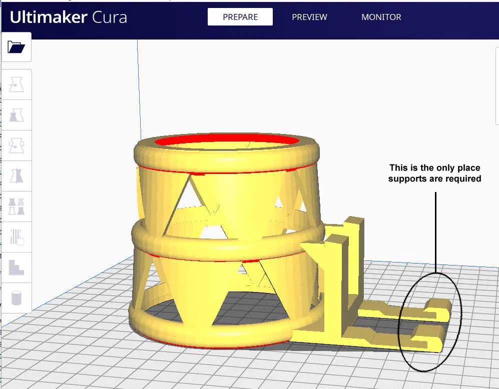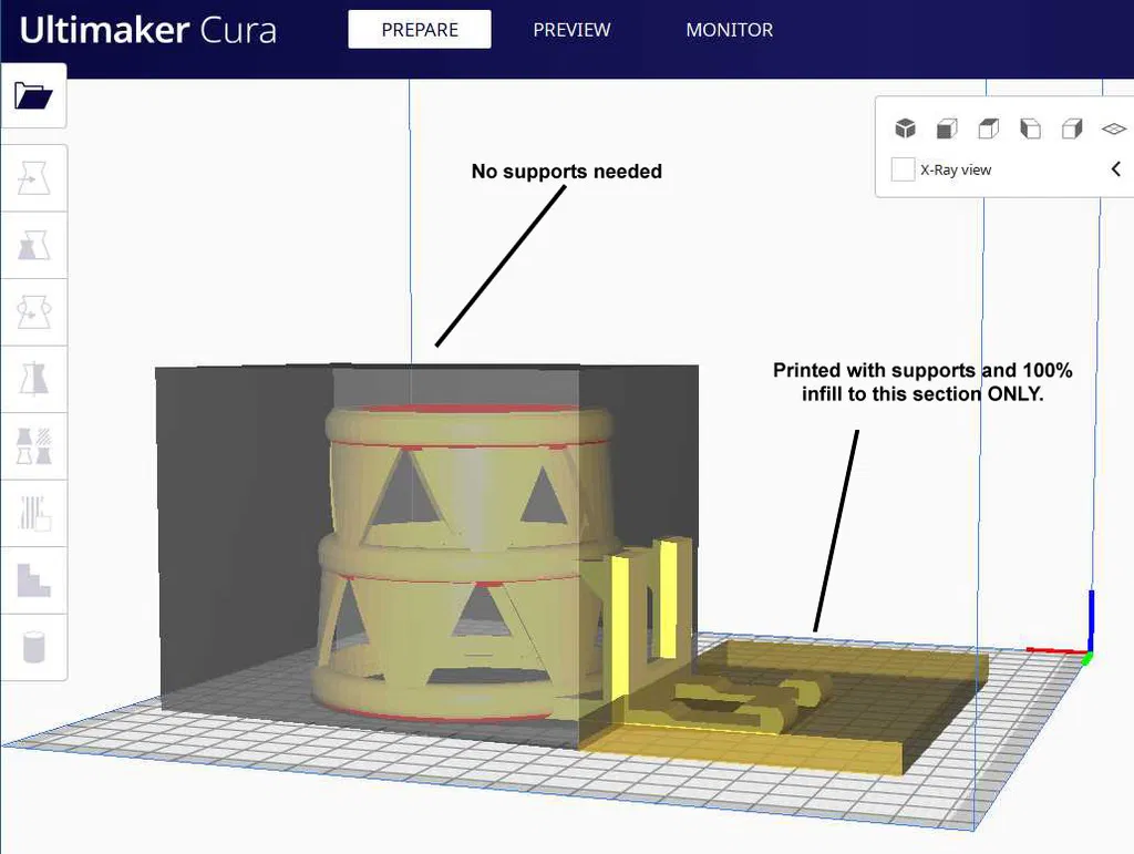 Dân nào mà xài Mazda CX-5 rồi thì cũng biết cái chỗ để ly cà phê trên xe nó dở ẹc hà. Tui thiết kế cái đế ly này để nó vừa khít vô mấy cái khe hẹp của cái cửa gió điều hòa, rồi tận dụng cái phần nhô ra phía dưới cái cửa gió để đỡ cái ly nước luôn. Mấy cái này tui in bằng PLA đó, mà xài PLA thì để lâu ngày nó bị oằn oằn xuống á. Tui đã in lại bằng PETG cho nó cứng cáp hơn, chịu được nắng với nhiệt độ cao tốt hơn. Cái này nó thiết kế làm 2 mảnh để mình in cái thân chính không cần support luôn nha. Tuy nhiên, mấy cái phần móc vô cửa gió thì phải thêm support mới được. Tui xài Cura để chỉnh sửa cài đặt riêng cho cái phần nối này thì để infill 100% với support luôn.