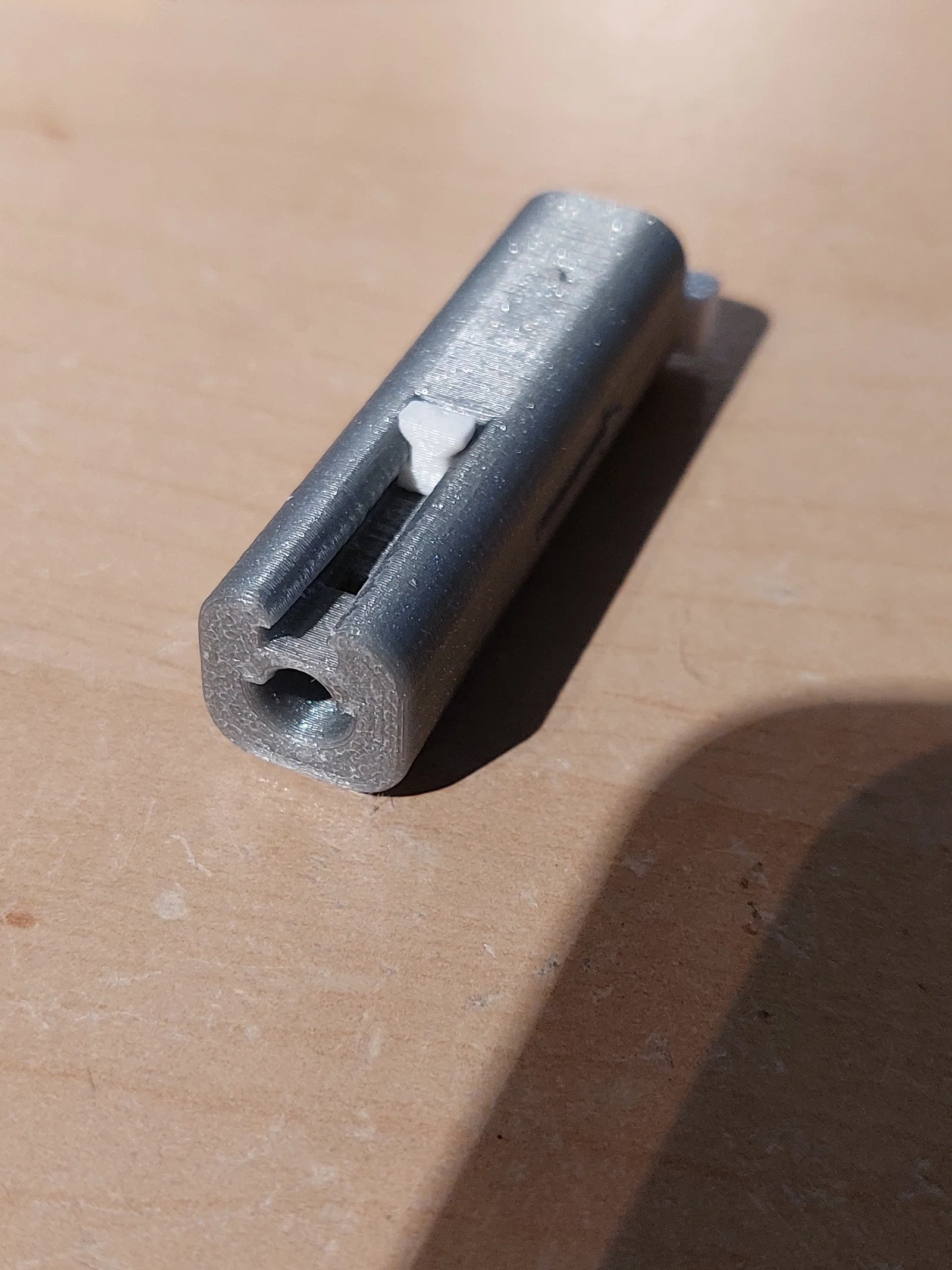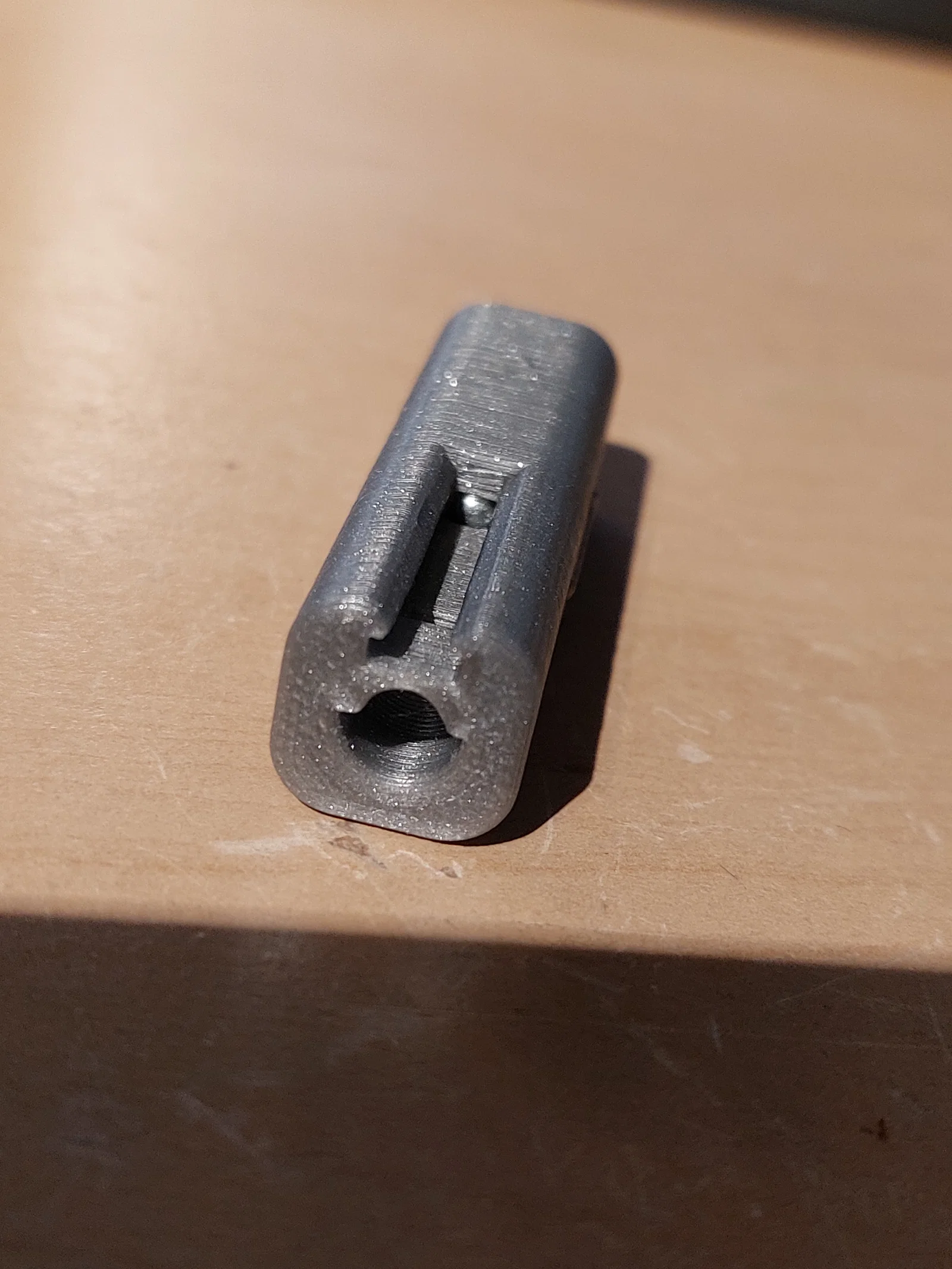 Bên trong có một viên bi thép 4,5mm từ súng BB và một nam châm 20x6x2mm, hoạt động như một lò xo giữ viên bi thép để đảm bảo nó hoạt động mọi lúc. Bạn cần tạm dừng in để đặt viên bi thép vào. Nam châm được giữ bởi nắp, cần ấn chặt vào thân chính để khớp. Phần nhả cần được chà nhám một chút để chạy trơn tru bên trong van. Với 2 đầu nối, bạn có thể kết nối nó với bất kỳ ống teflon 4mm nào.