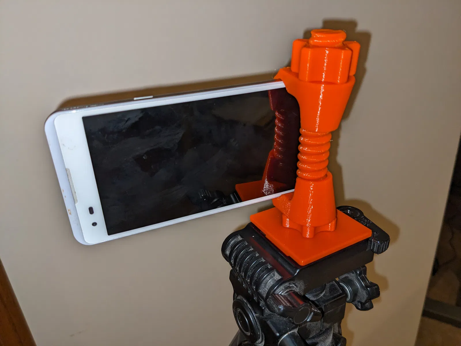 Giá đỡ điện thoại này được làm riêng để khớp với cơ chế đế nhả nhanh trên chân máy Velbon T-3500 của tôi, nhưng tôi đoán nó cũng sẽ hoạt động trên các mẫu chân máy tương tự khác.