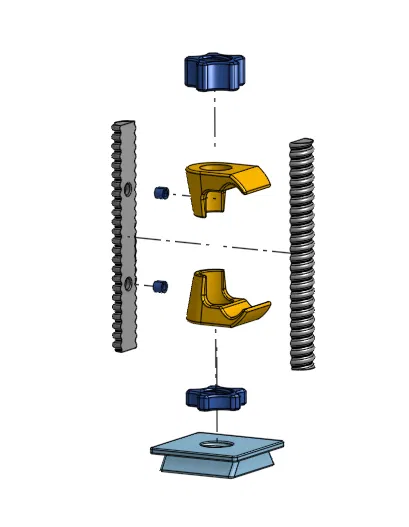 - Vặn Trục (Post) vào Đế (Plate), sau đó vặn Bộ Khóa Trục (PostLock) xuống để cố định.