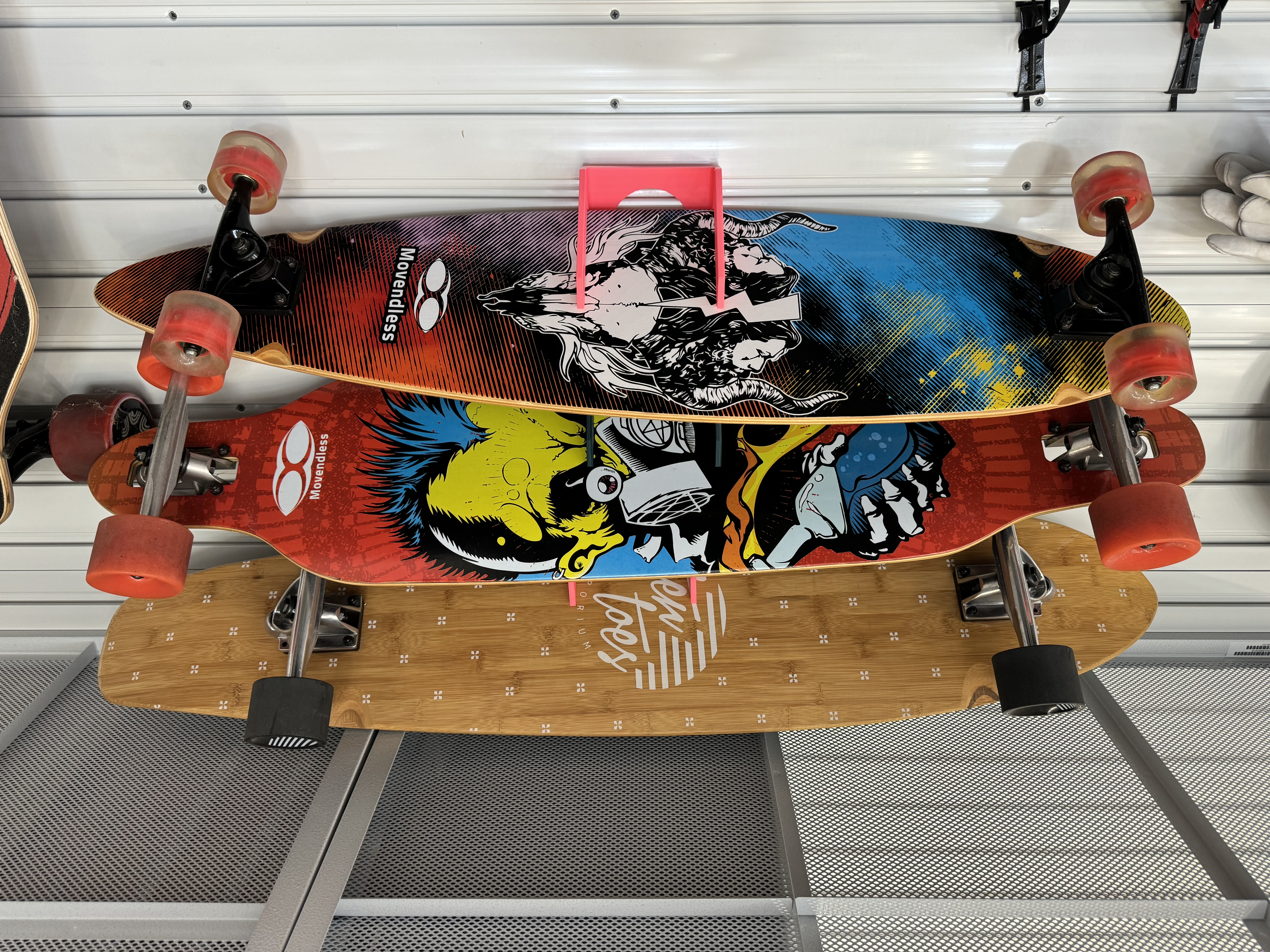 Muốn có cách để cất vài ván trượt trên GearWall mà không tốn nhiều diện tích. Tùy thuộc vào chiều cao ván trượt/bánh xe mà bạn có thể xếp chồng chúng lên nhau.