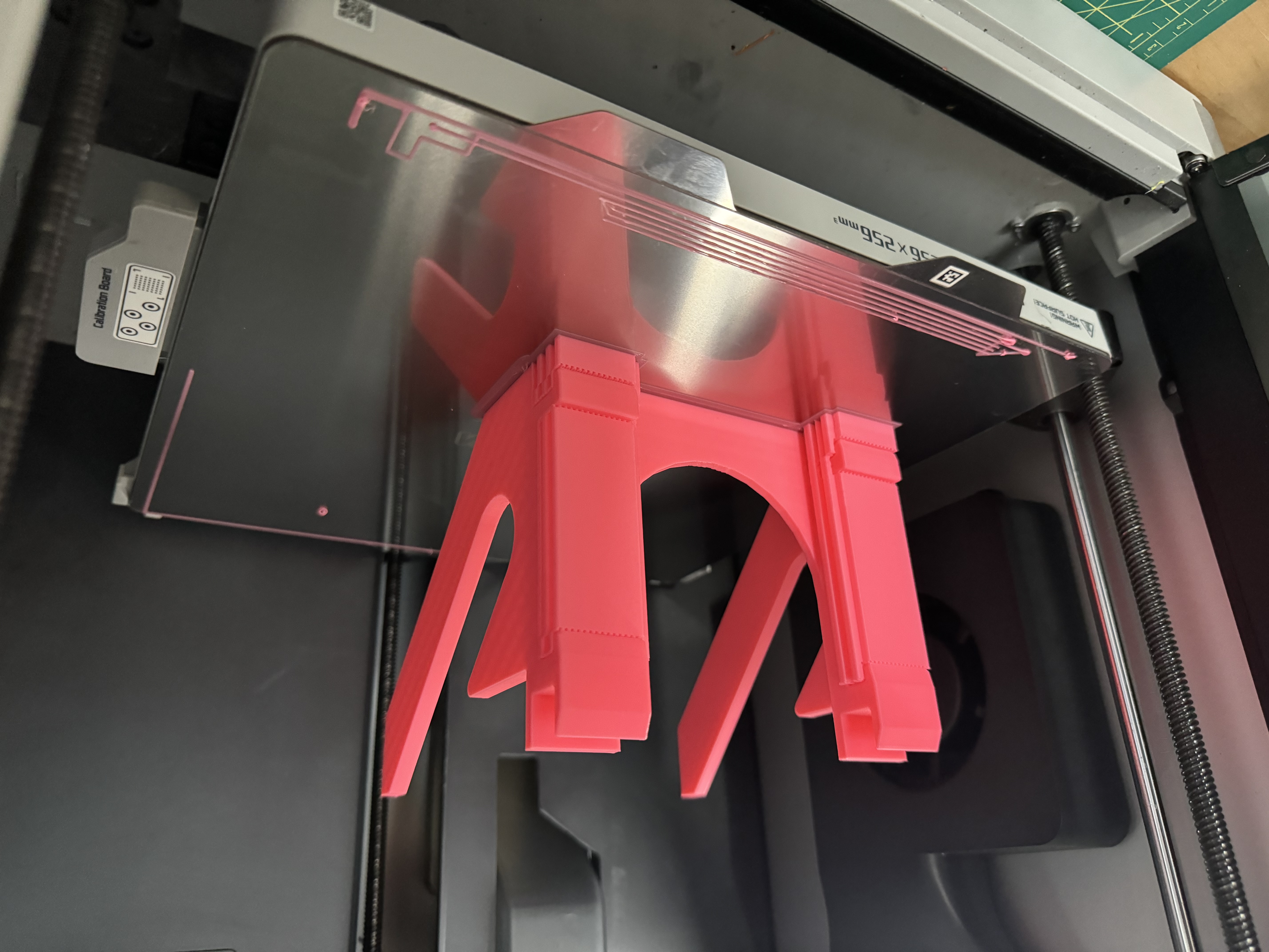 Sẽ cần in với vật liệu hỗ trợ, in với mặt có mở cho ván trượt hướng lên trên và mặt đáy phẳng trên khay in (xem ảnh).