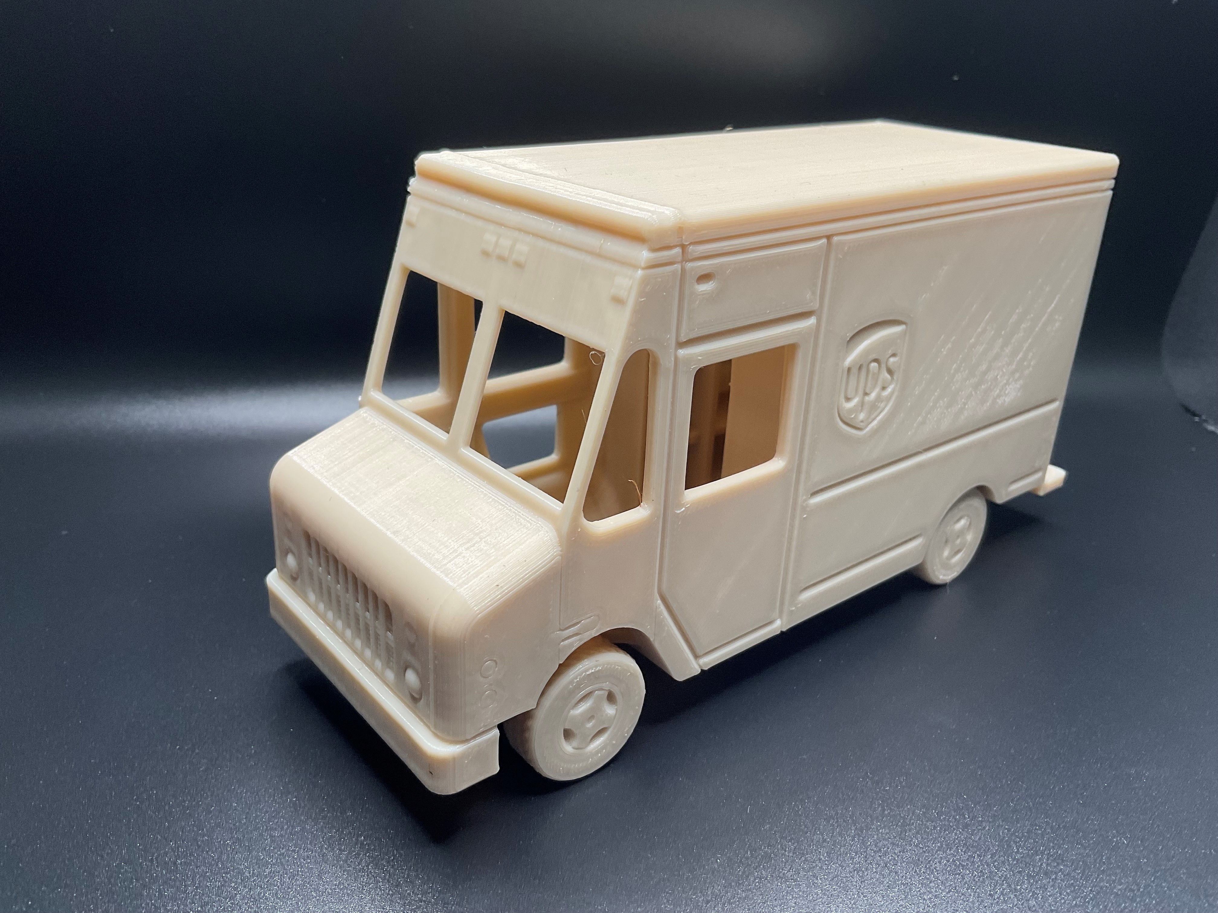 Mô hình xe tải UPS "in liền" (Print in Place) với bánh xe có thể xoay được. Không cần supports khi in. Thích hợp làm đồ chơi hoặc vật trang trí.