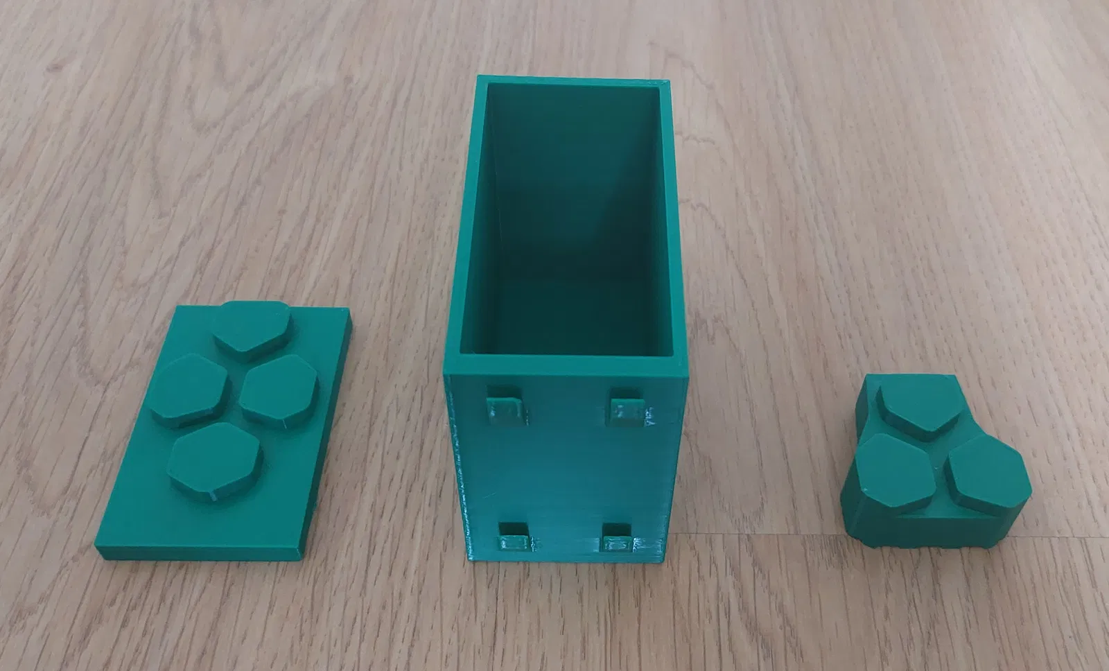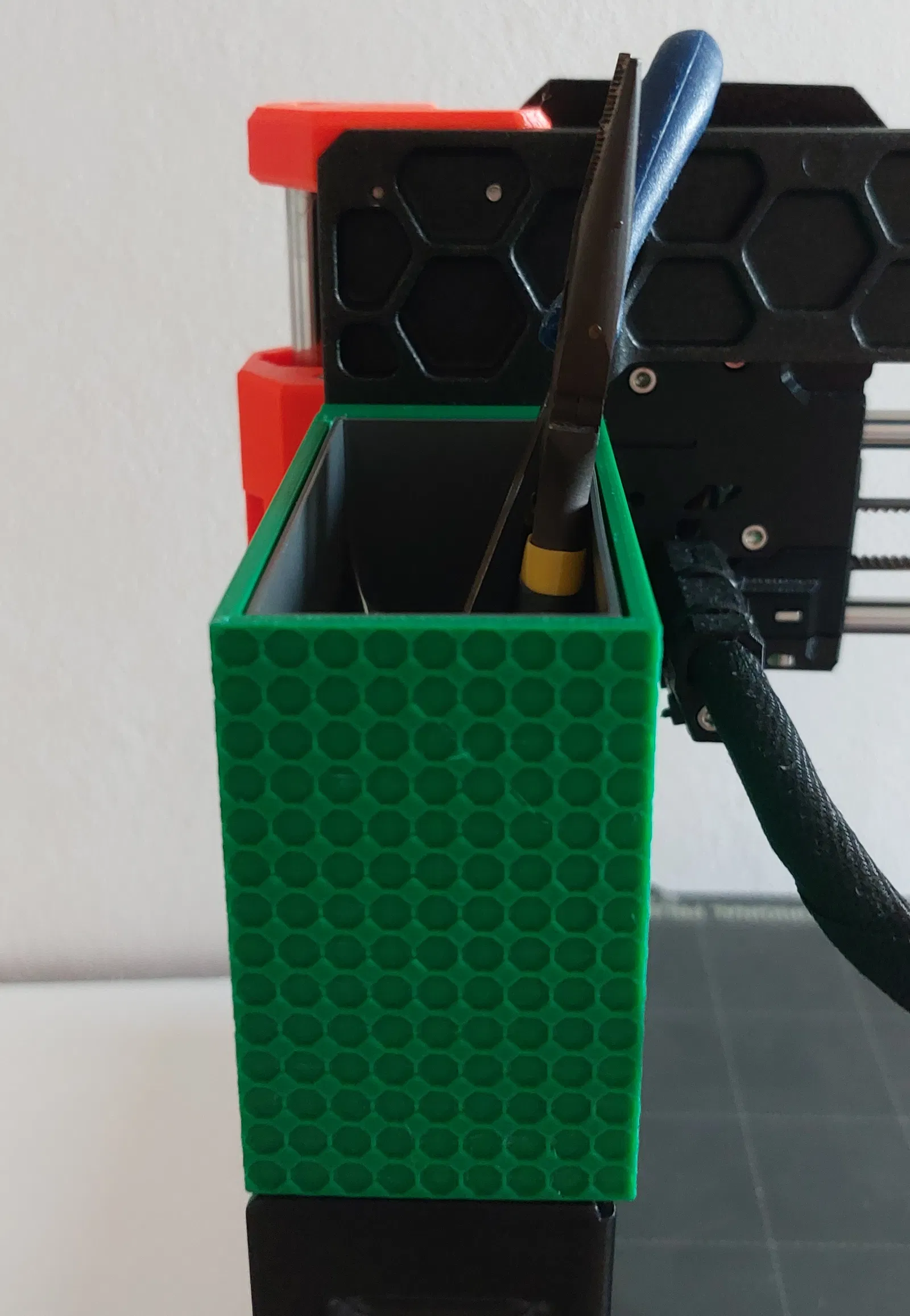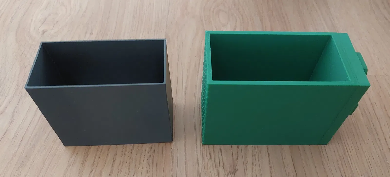 Mẫu đầu tiên là một cái hộp có thể dùng để đựng đồ như rasper, hoặc cũng có thể dùng làm thùng rác. Mẫu thứ hai thì chỉ có thể đựng kìm đi kèm với máy in 3D Original Průša MK4.