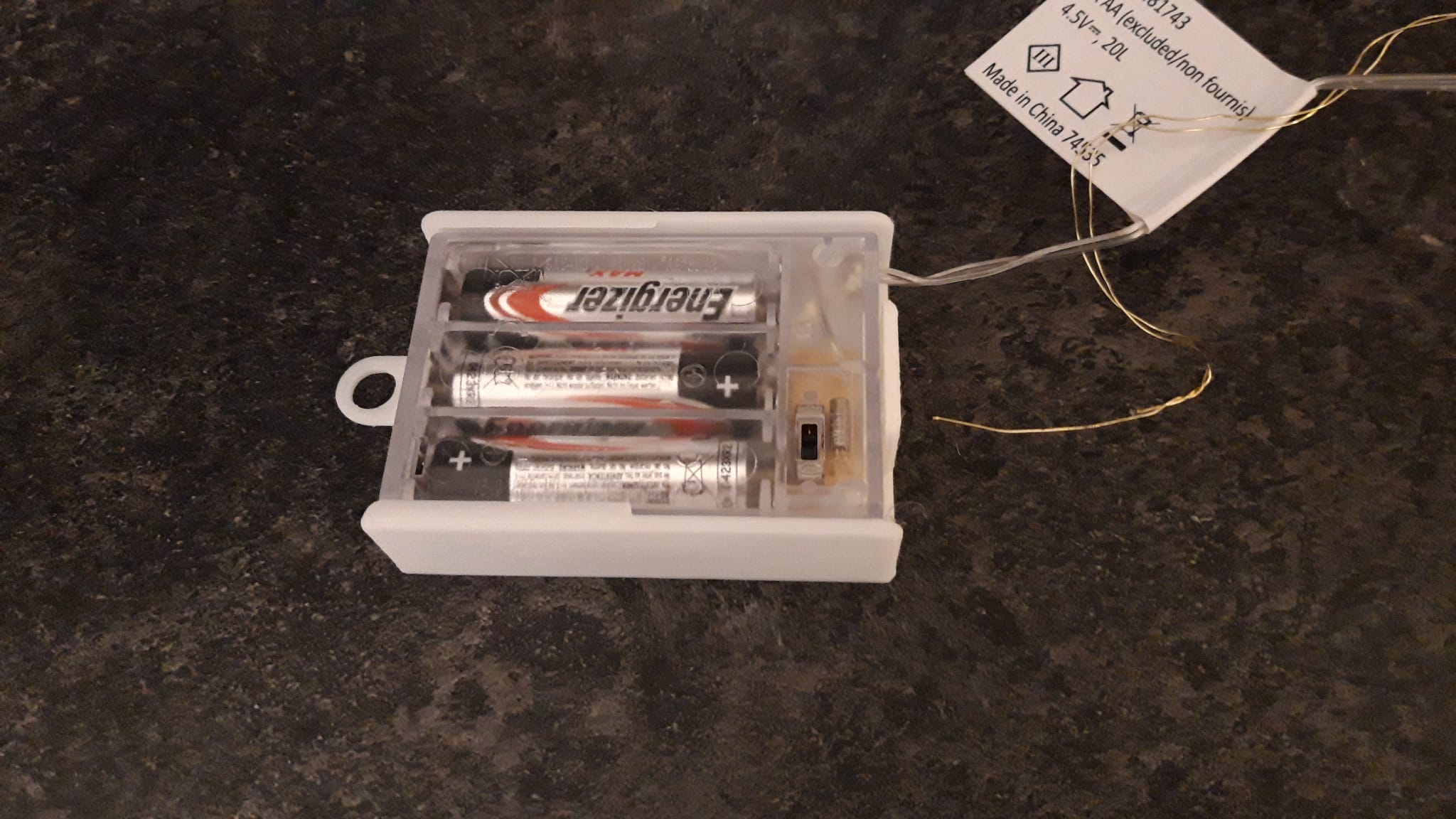Tuy nhiên, để treo ngôi sao, hộp pin thiếu một cái móc treo, và nó cũng không đẹp lắm. Đó là lý do tại sao tôi đã thiết kế cái giá đỡ này, nơi hộp pin có thể được kẹp vào.