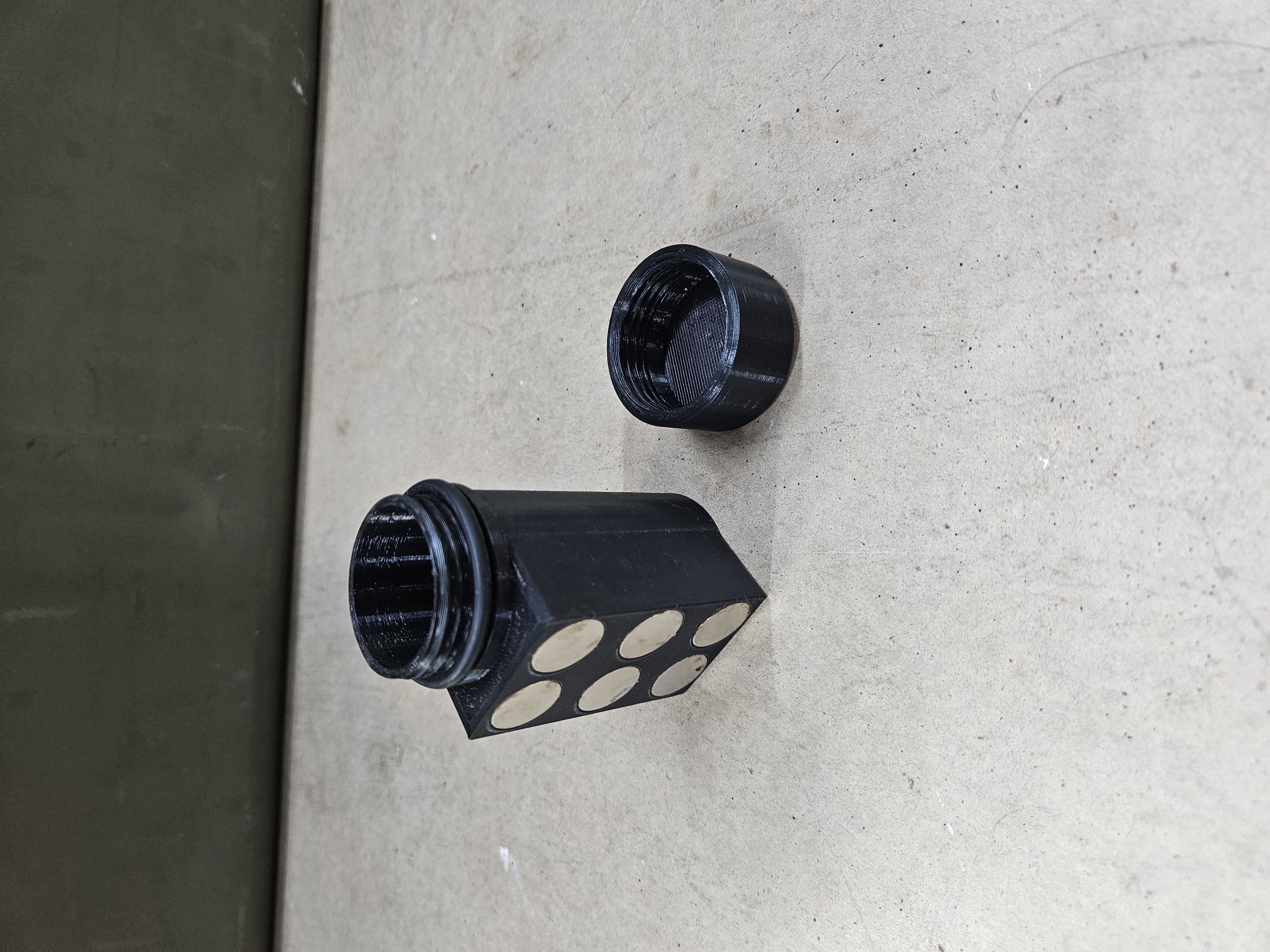 Ống nam châm đựng đồ cá nhân, có O-ring chống nước và khí. Nam châm gắn chặt không cần keo, mua dễ dàng từ Amazon. Thích hợp để cất thuốc, tiền xu, hoặc thuốc lá.