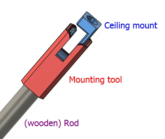 Công cụ lắp đặt bạn chỉ cần một lần. Một lần nữa, với định hướng đúng, nó không cần hỗ trợ. Bạn cần mua một cái que (bằng gỗ) có đường kính 12 mm và gắn nó vào mặt dưới của công cụ lắp đặt. Hãy làm cho cái que dài như bạn cần để dễ dàng với tới trần văn phòng của bạn.