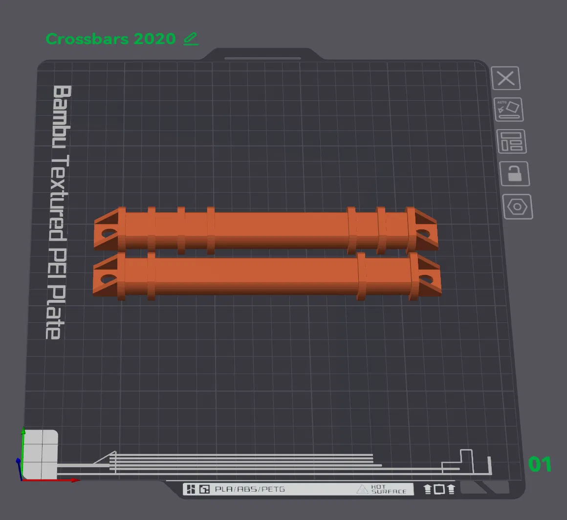 Thanh ngang (crossbar) chế lại cho máy cuộn sợi Pastamatic, phiên bản này được tùy chỉnh để phù hợp với nhôm định hình size 2020. Bản in trên máy X1C với sợi PETG.