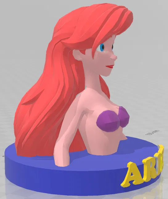 Mô hình 3D bust của Ariel, nàng tiên cá trong bộ phim Nàng Tiên Cá. Thiết kế theo phong cách low poly độc đáo, rất hợp để trưng bày. Lưu ý sử dụng tree supports cho phần cằm khi in FDM.