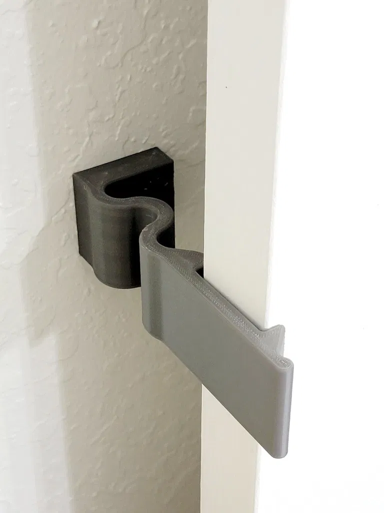 Cái kẹp cửa gắn tường này giúp giữ cửa mở, không cho trẻ em đóng lại. Thiết kế linh hoạt, dễ dàng đóng mở cửa mà vẫn chắc chắn. Có thể gắn trên tường bằng vít. Nên sử dụng PETG với độ điền đầy 15% để có độ đàn hồi và cứng cáp phù hợp.