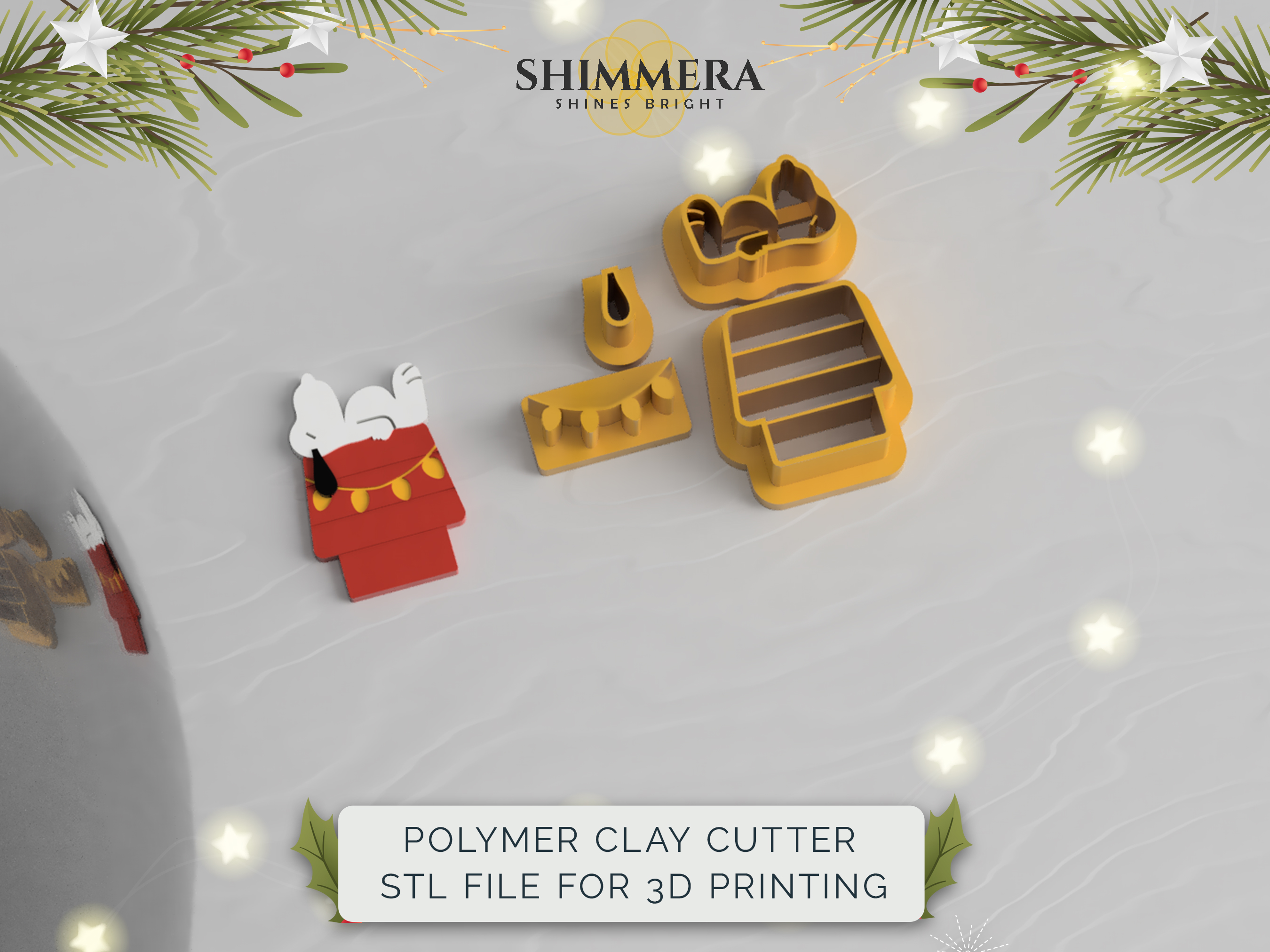 Khuôn cắt đất sét làm bông tai Snoopy Giáng Sinh, chuyên dụng cho đất sét polymer. Dụng cụ cắt dập đất sét với cạnh cắt 0.7mm, đế dày 3mm và chiều cao 12mm. Hoàn hảo để tạo ra những món trang sức độc đáo theo chủ đề Giáng Sinh.
