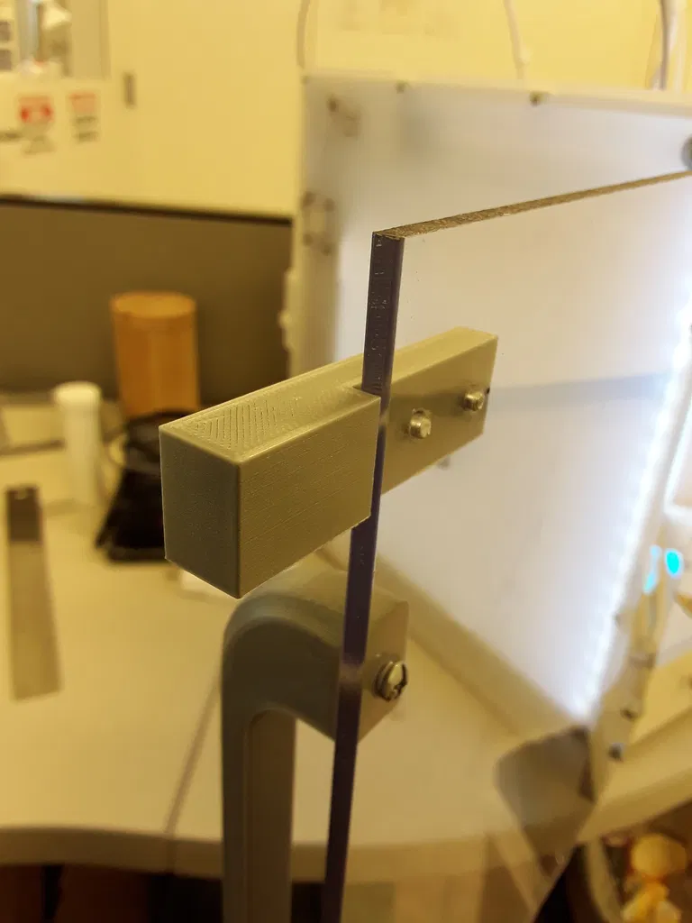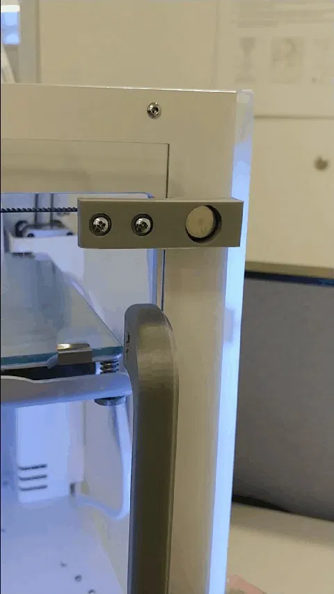 Chốt cửa nam châm này hoạt động tốt với cửa của Ultimaker 3, yêu cầu một nam châm 14x5mm và hai vít M3. Bạn có thể điều chỉnh vị trí nam châm để đạt được lực đóng cửa mong muốn, tương thích với tấm acrylic 5mm.