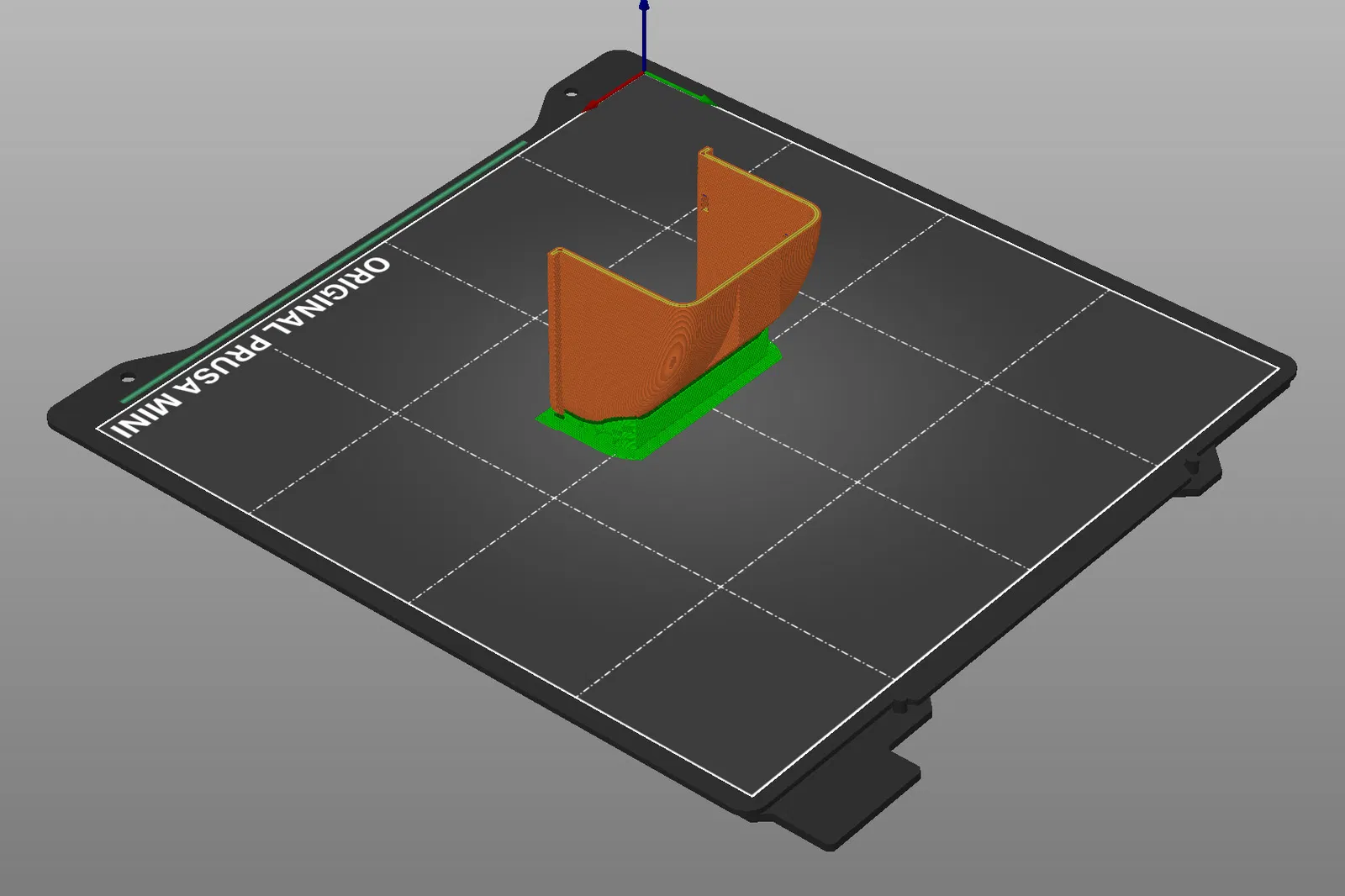 In bằng PETG (hoặc vật liệu chịu nhiệt độ cao khác), vì tất cả các thành đều có lớp độn nên không thực sự quan trọng. Không có hướng dẫn đặc biệt..