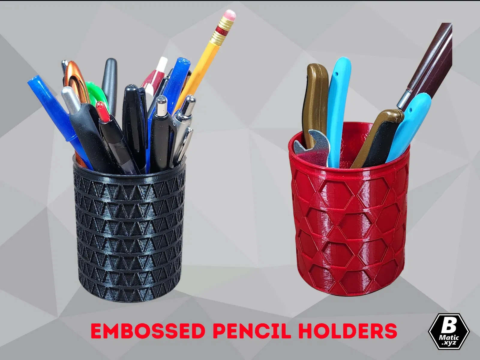 Bộ giữ bút chì hình trụ đơn giản với các mẫu hình học được chạm nổi