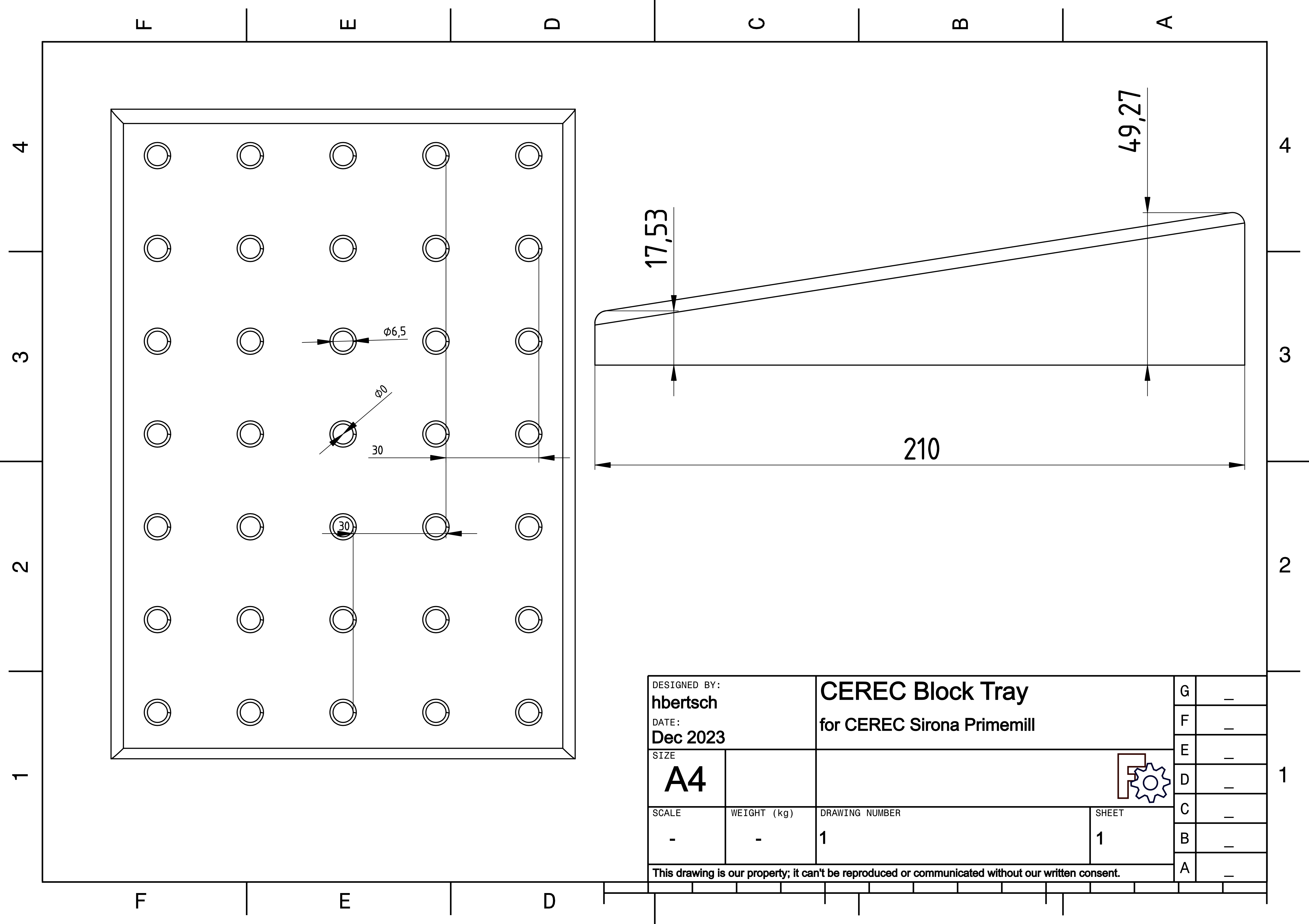 Một cái khay/giá đỡ dùng để đựng các khối phôi dùng cho máy phay CEREC Sirona Primemill. Giúp trưng bày và tìm kiếm khối phôi nhanh chóng.
