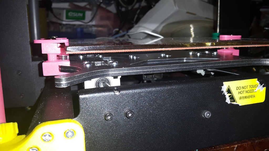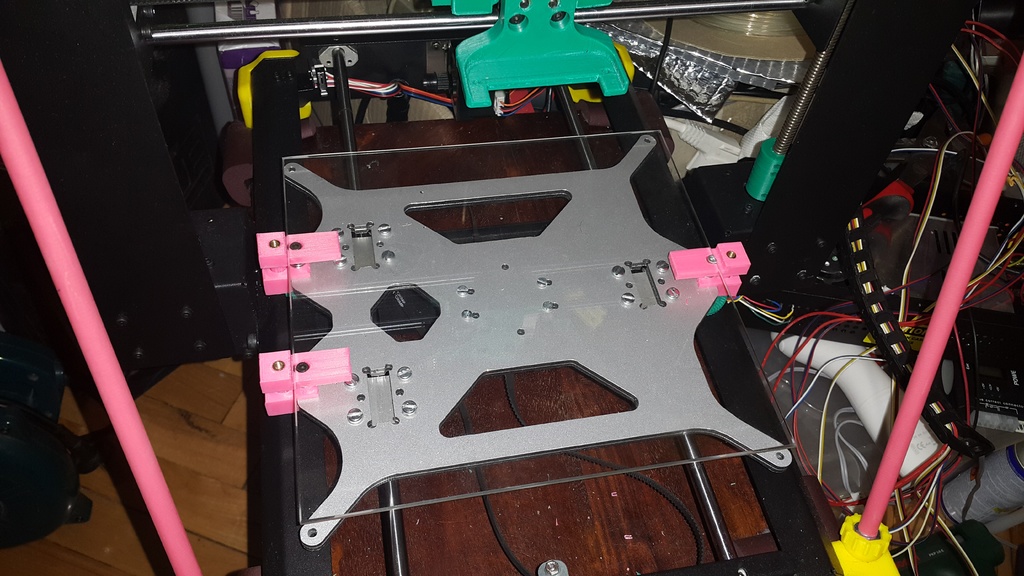 Tại sao? - Tôi không dùng tấm nhôm nào cả vì có một miếng kính borosilicate đã dán sẵn bộ phận làm nóng lên đó, nên không cần ốc vít xuyên qua kính/bộ phận làm nóng, do đó cần thứ như thế này. Như bạn thấy trong một trong những hình ảnh, bạn cũng có thể sử dụng tấm nhiệt PCB nguyên bản của mình (có hoặc không có kính bên trên) với hệ thống 3 điểm này.