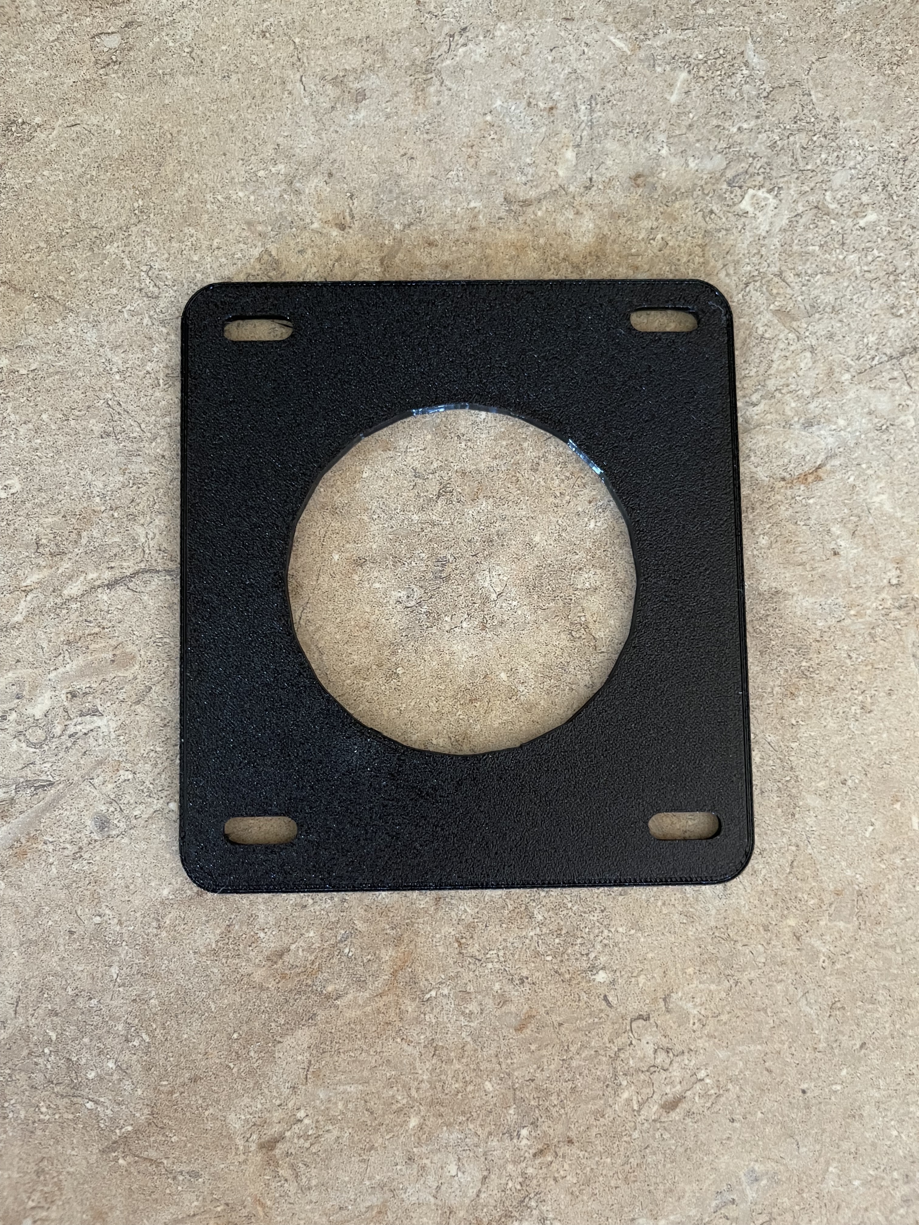 Tôi có mấy cái khớp nối ống dẫn khí router 2.5" còn dư trong gara nên tôi quyết định tận dụng chúng làm ống thoát khí cho mấy cái thùng LACK của mình. Tôi đang tìm một cái giá đỡ để cố định khớp nối này, làm sao cho nó đi xuyên qua tấm mica phía sau thùng. Tôi đã làm theo khuôn khoan của cái giá đỡ cũ và dùng mấy con ốc dư từ một bộ MK3S+ của tôi để gắn các bộ phận lại với nhau. Tôi cũng dùng cưa lỗ để khoét một lỗ vừa đủ trên tấm mica cho phép khói thoát vào khớp nối 2.5".