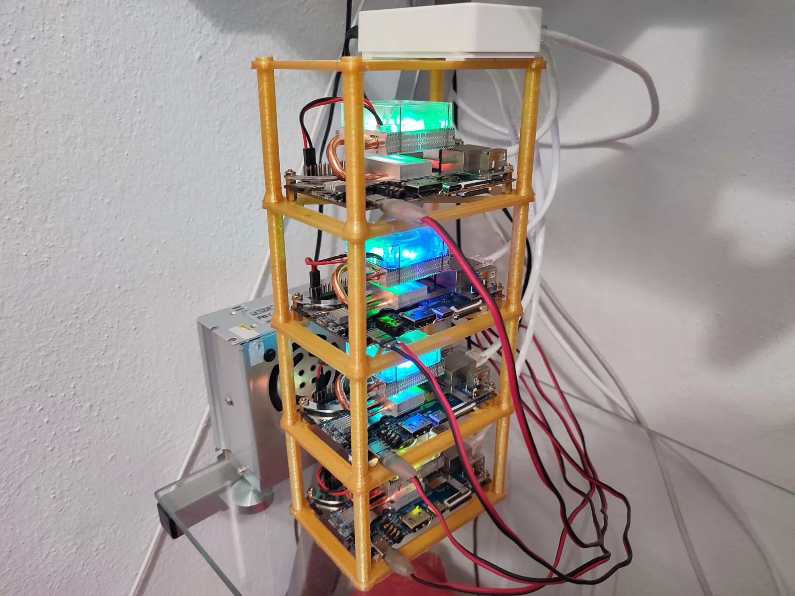 Cấu hình đề xuất là tối đa 4 Orange Pi xếp chồng lên nhau. Bao gồm cả mặt trên, tổng cộng cần 5 bản in cho cấu hình này.