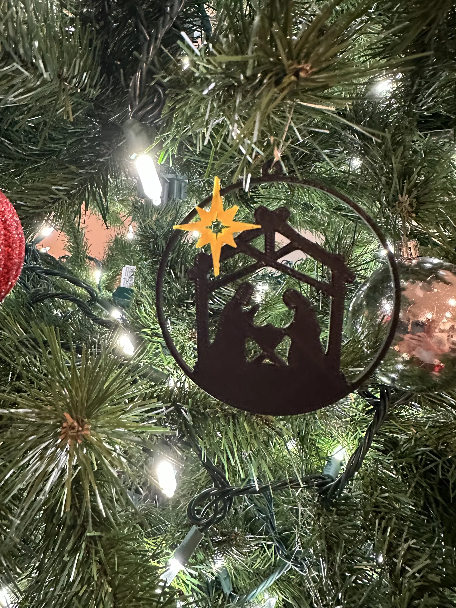 Móc treo Chúa Giáng Sinh đơn giản cho cây thông. Có thể in nhiều màu với AMS/MMU hoặc in một màu. Cần thêm móc treo, dây hoặc kẹp giấy để trang trí.