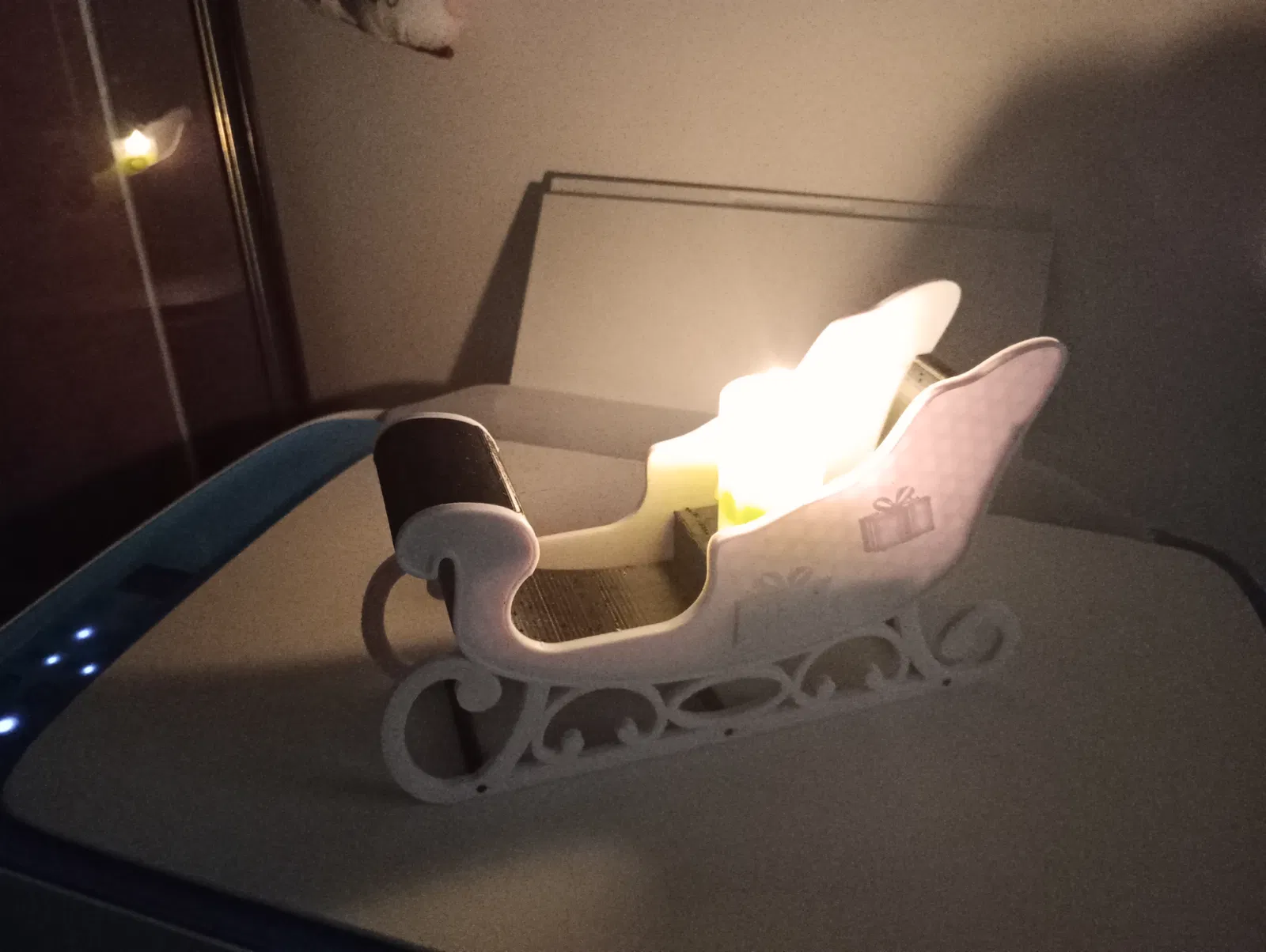Mẫu xe trượt tuyết trang trí bàn, hoàn hảo để đặt một cây nến LED. Mang không khí Giáng Sinh ấm áp đến không gian nhà bạn với vật trang trí độc đáo này.
