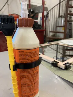 Cái kẹp này giúp giữ cây cọ dán gỗ của bạn luôn ở gần chai keo, khỏi mất công tìm kiếm. Rất tiện cho anh em làm mộc, khỏi sợ cọ bị khô hay lạc đâu mất. Gắn vô chai keo là xong, xài xong để đó luôn, gọn gàng, lẹ làng.