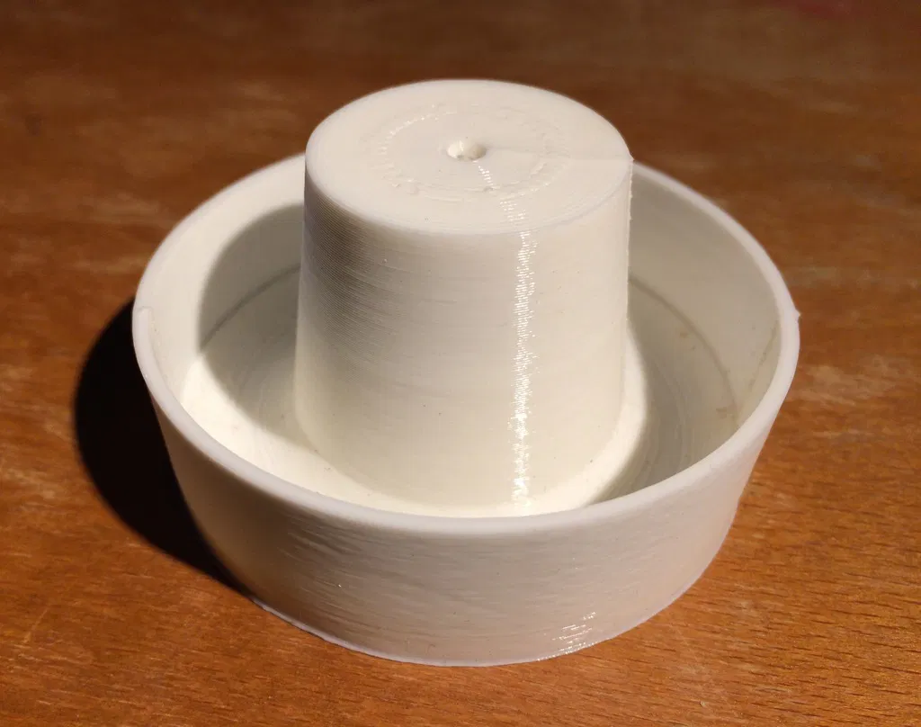Cập nhật (23 tháng 4 năm 2015) - Tôi đã thêm nắp che mưa cho chân để tránh mưa làm trôi dầu hoặc các chất khác bạn đổ vào rãnh. Phần hình tròn nhỏ có thể xoay để xem hoặc đổ đầy rãnh rồi xoay lại để che đi.