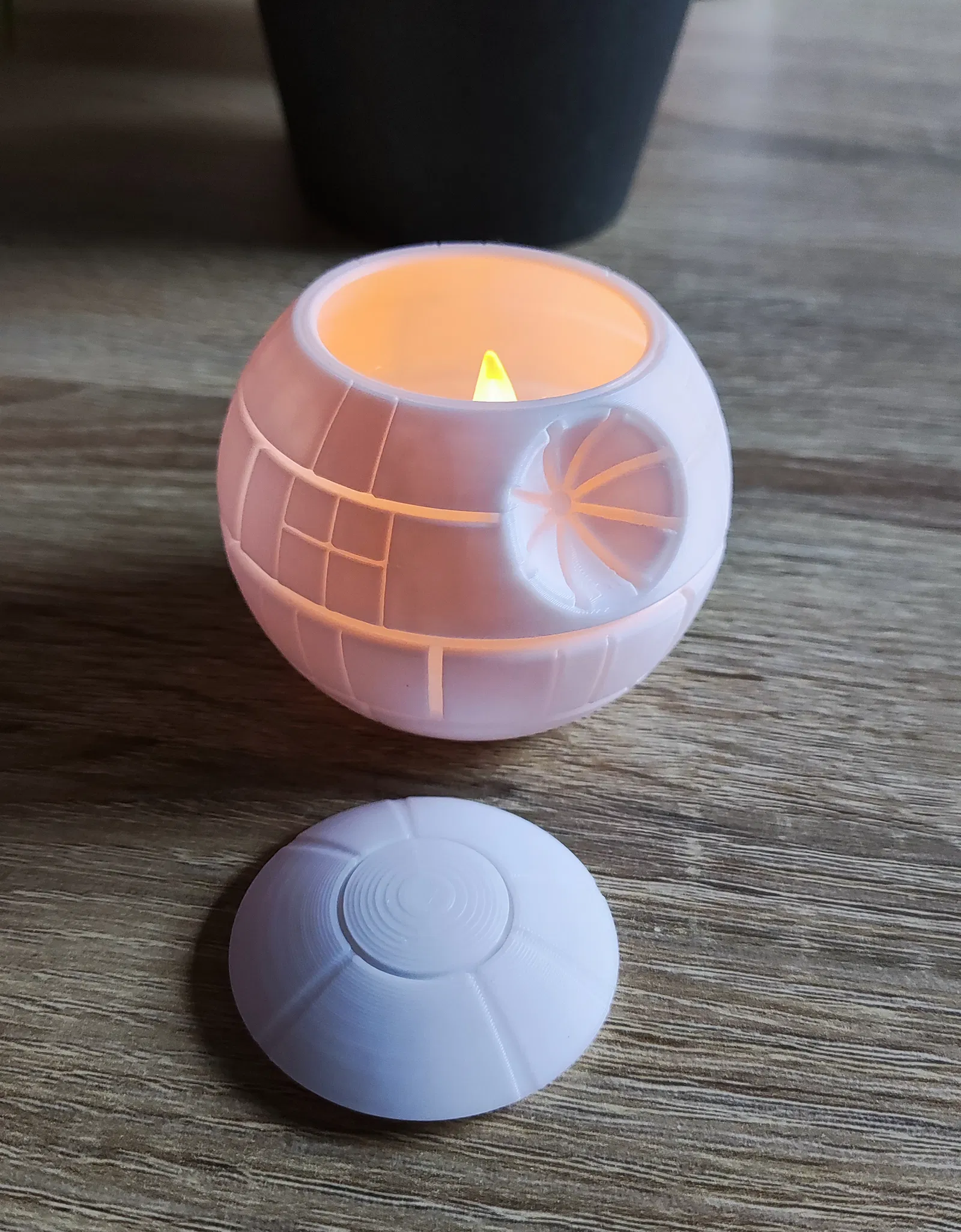 Đây là một Mô hình Ngôi sao Chết đơn giản cho nến LED, gồm có phần đế và phần nắp.