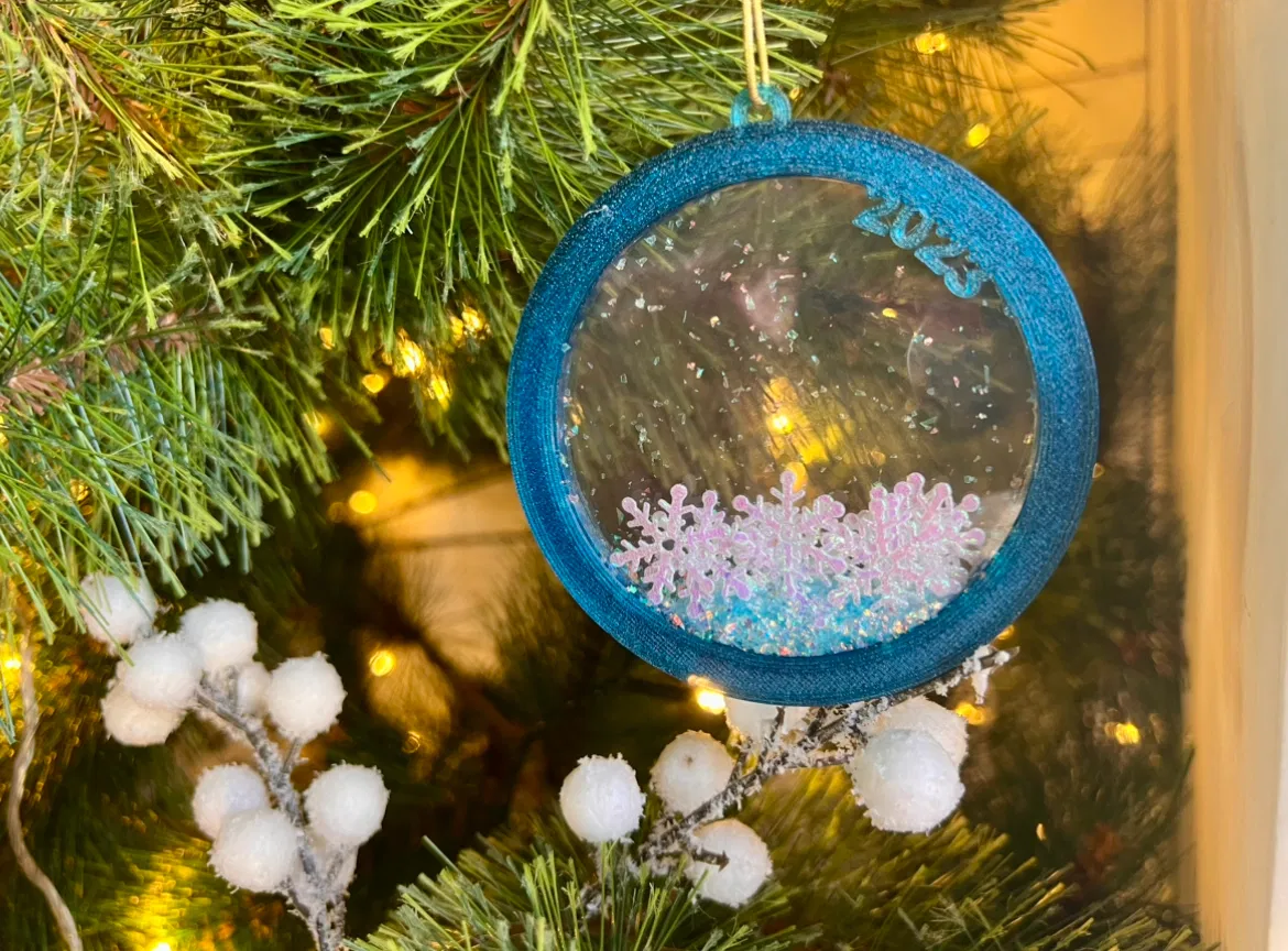 Tạo quả cầu trang trí độc đáo của riêng bạn với vỏ in 3D! Thêm keo, màng acetate và những gì bạn thích để lưu giữ kỷ niệm cho trẻ. Có thể tùy chỉnh tên và phông chữ bằng OpenSCAD.