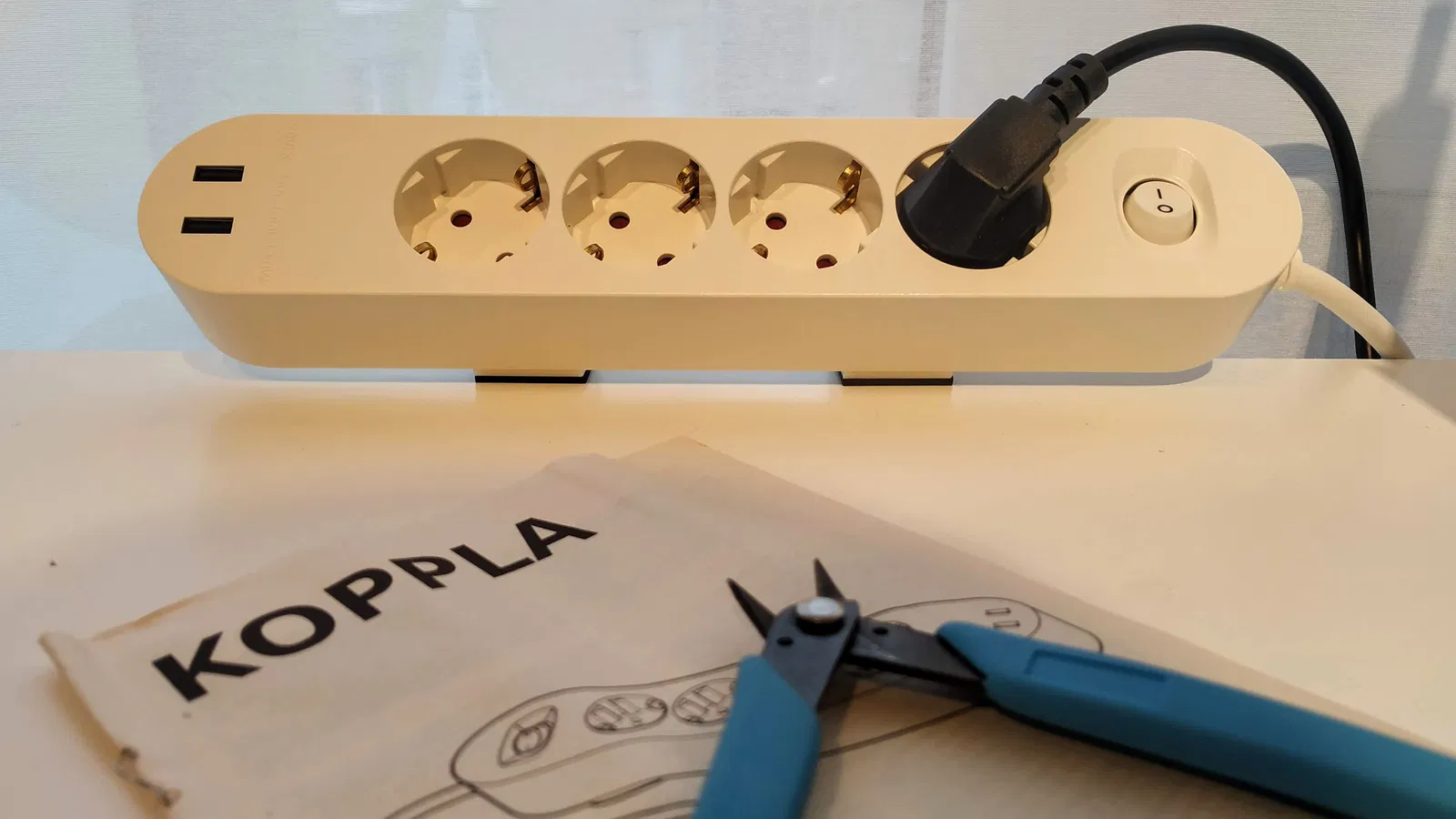 Cái kẹp bàn này được thiết kế để gắn dây nối dài IKEA KOPPLA vào bàn, giúp bạn dễ dàng truy cập các khe cắm mà không chiếm nhiều không gian.