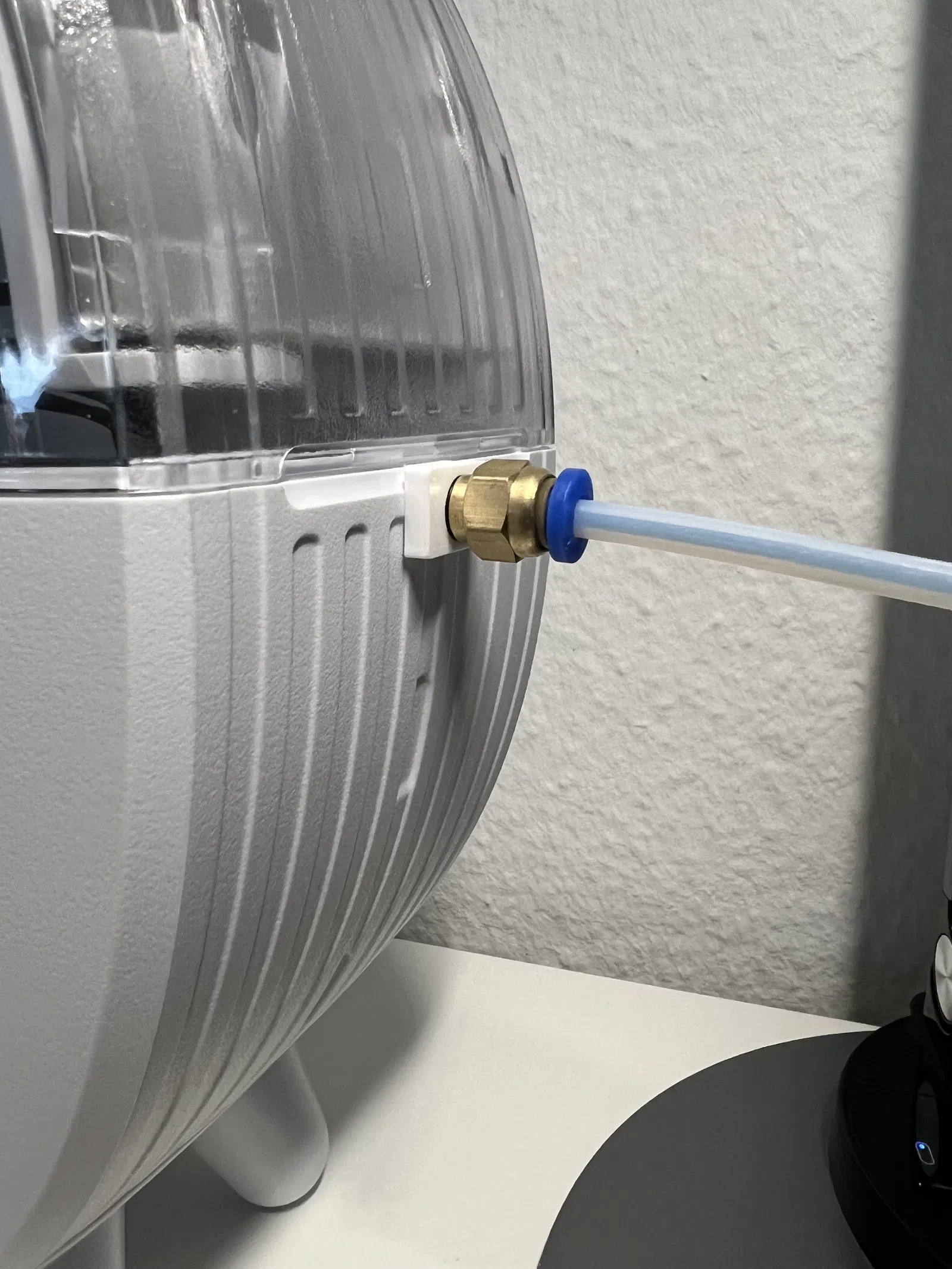 Phần in 3D được cung cấp có thể sử dụng trực tiếp bằng cách cắm ống PTFE vào mà không cần đầu nối Festo, nhưng nó sẽ không bền bằng. Đầu nối Festo sẽ cắt vào ren của bộ phận PETG. Lỗ bên trong có hình nón để dẫn filament tốt hơn.