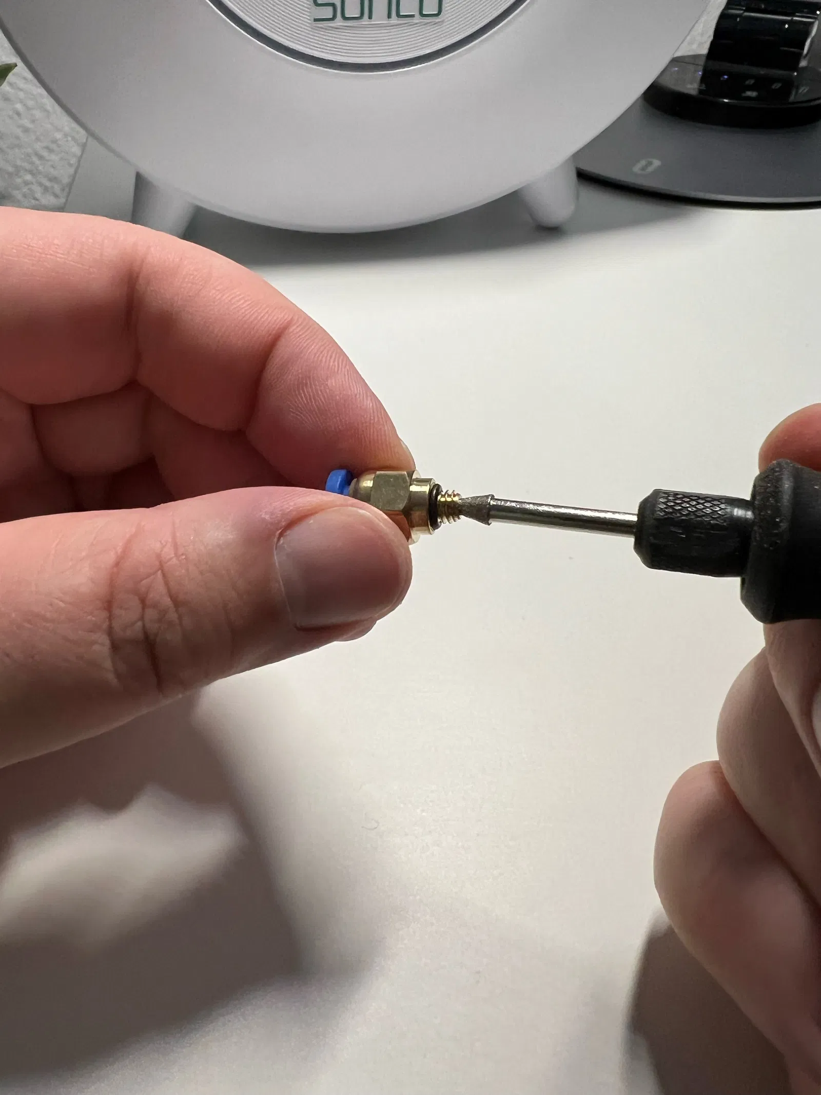 BẮT BUỘC phải dùng máy Dremel để khoét hai đầu nối Festo M5 bên trong ren theo hình nón để dẫn filament tốt hơn và tránh bị mài mòn!!!!
